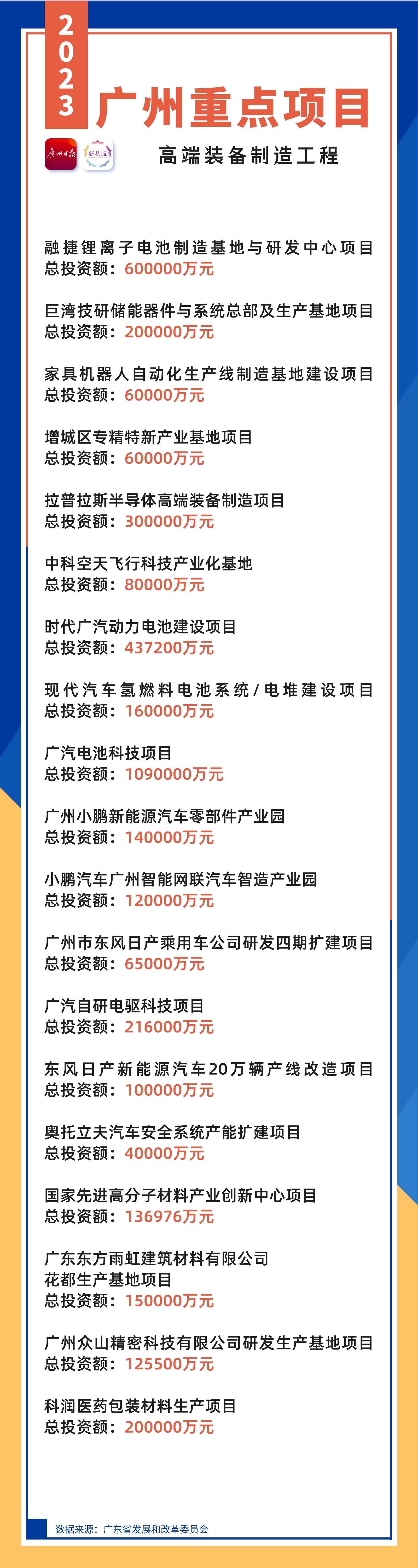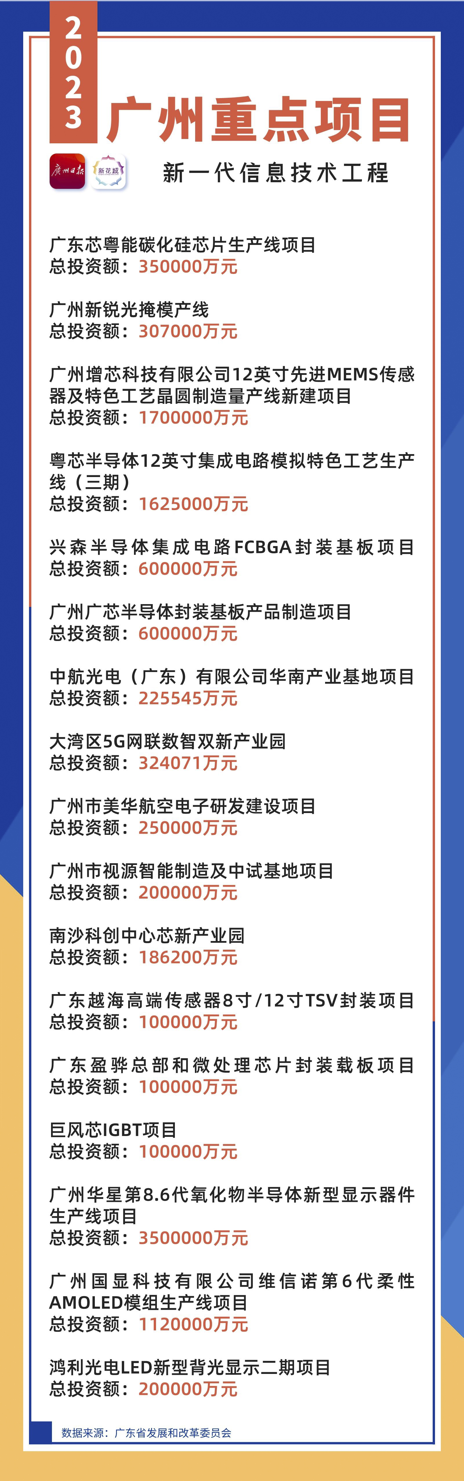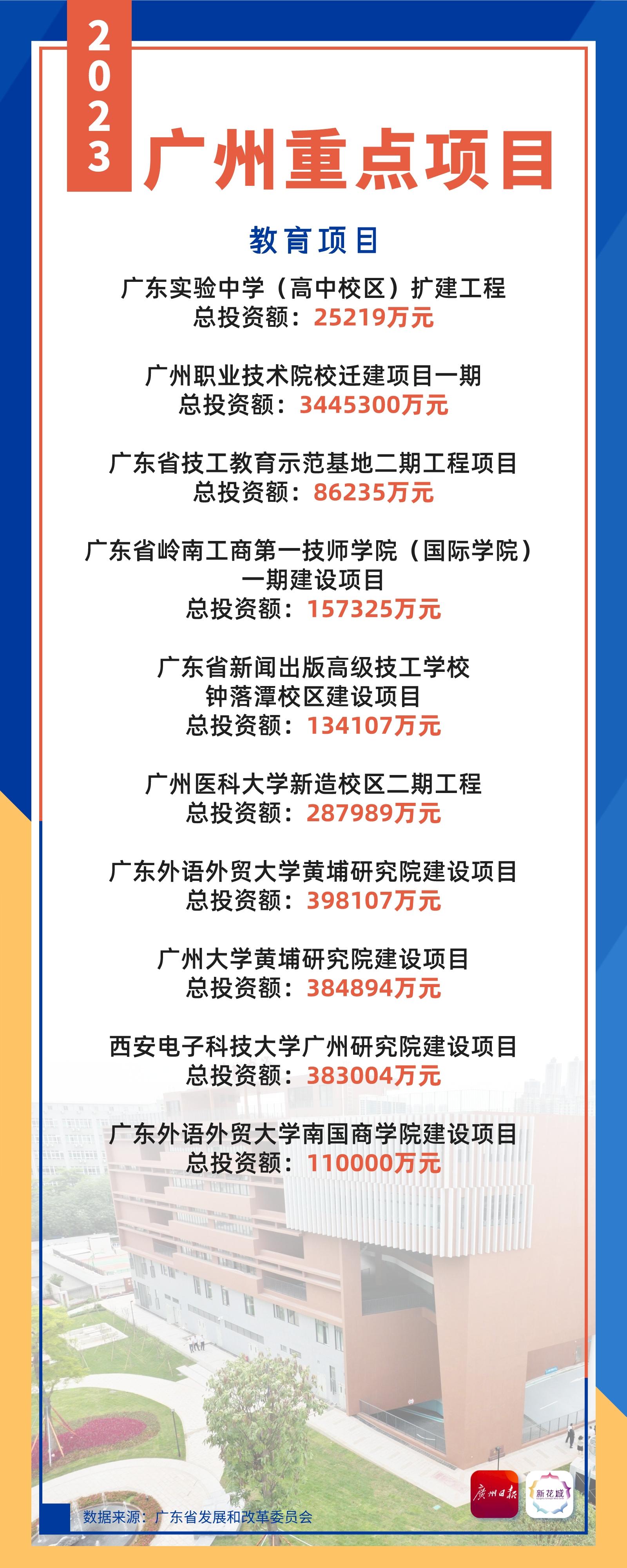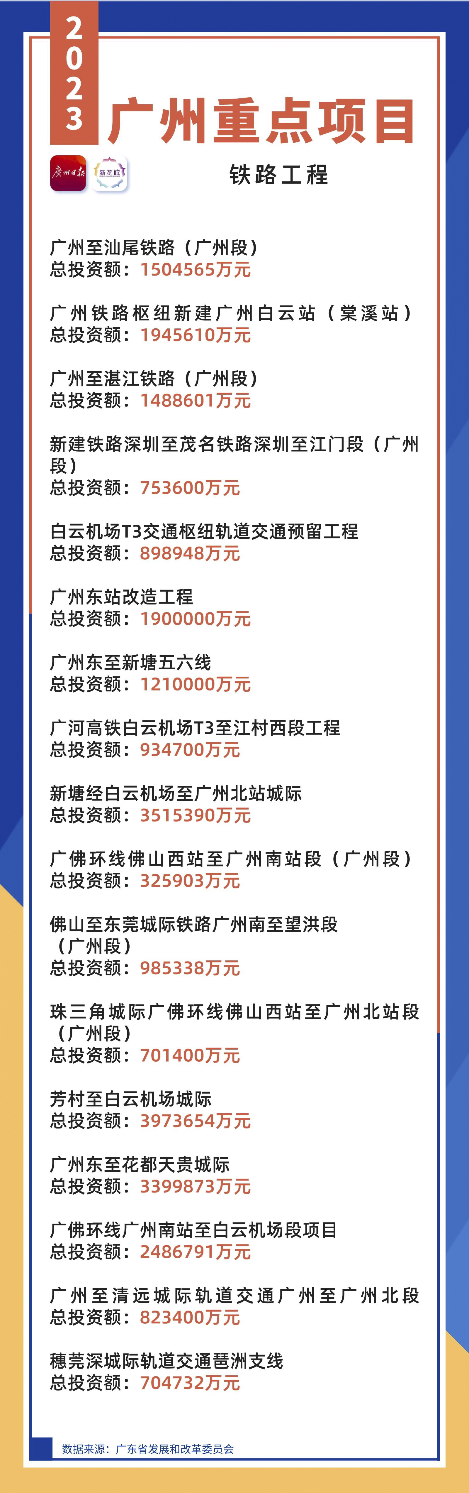 2023年,广东省全年安排省重点建设项目1530个、年度计划投资1万亿元。其中,广州将干这些重点项目: