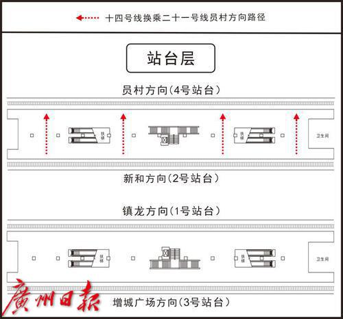 记者从广州地铁了解到,为了提高市民抵达市中心的出行效率,自1月17日运营时间起,镇龙站的换乘方式将有所调整。调整后,市民搭乘十四号线在镇龙站换乘时,下车走到对面站台即可坐上开往二十一号线员村方向的列车,无需上去站厅再换乘,走行时间由原来约4分钟缩短至1分钟以内,有效缩短了前往市区乘客的换乘走行距离,换乘更省时、更便捷。与此同时,二十一号线的快车开行时间也将进行微调,以更好地匹配工作日十四号线的换乘需求,换乘衔接更紧密,候车时间也更短。广州地铁表示,为了让乘客更好地了解相关调整信息,十四号线将通过车站及列车广播、地铁电视、车站告示等方式提供换乘路径指引,乘客在换乘时可留意相关告示,以免坐错方向。