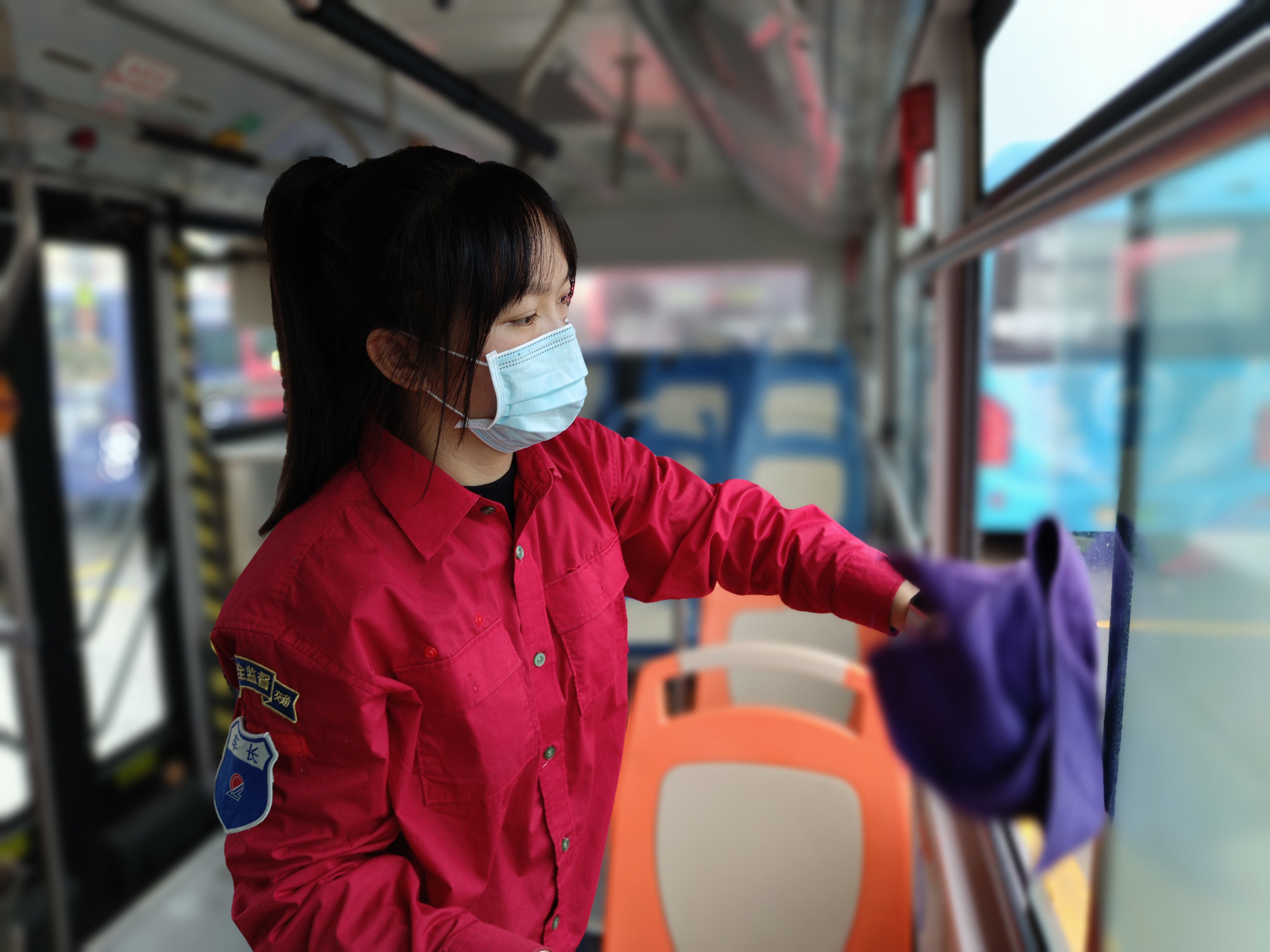 1月15日清晨,佛山市南海区佛广集团里沥分公司里07短支线路的女公交司机王家琪来到站场,按操作规程对车厢内外进行细致地检查,打扫卫生,通风消毒。做完这一切后,她把车辆开到起点站新材料C区公交站等待发班。