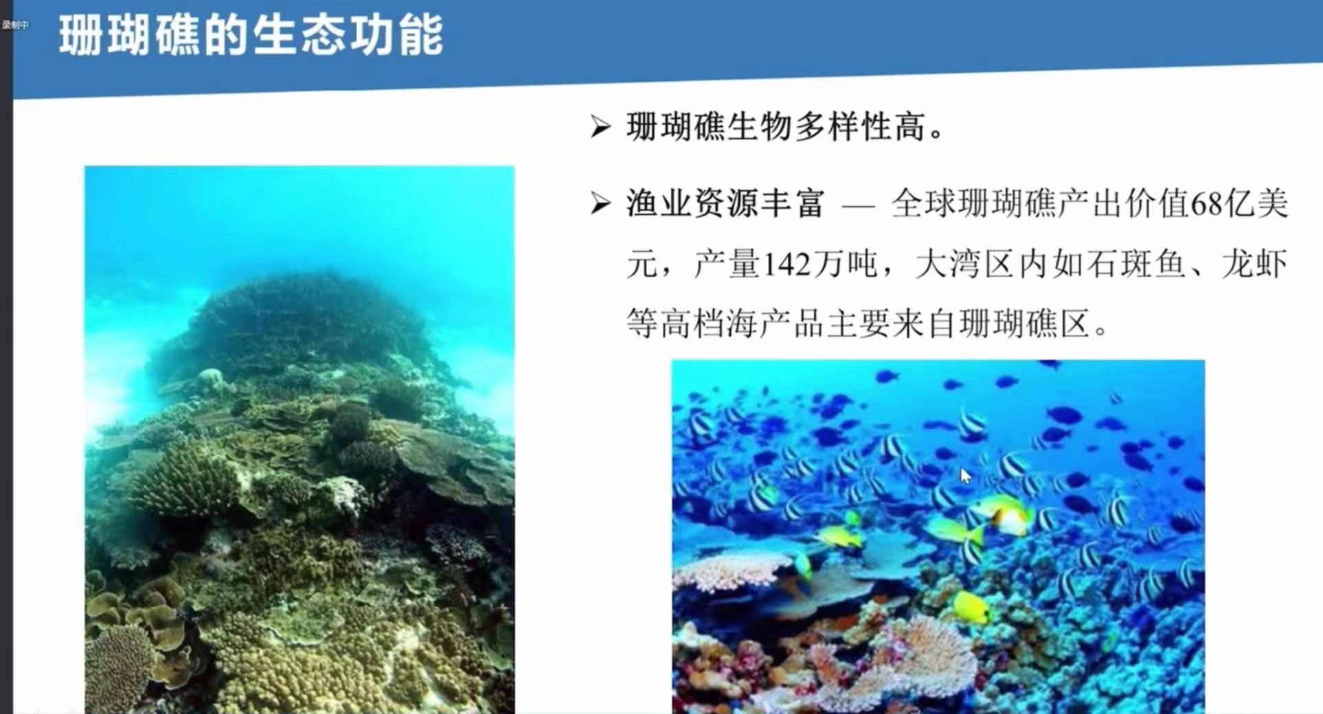黄晖介绍,除了渔业和旅游业,珊瑚礁还有重要生态功能,就是海岸的保护功能,健康的珊瑚礁可以消除海浪能量97%,降低波高84%,保护海岸的价值达到150万美元每公里。珊瑚礁为大湾区绵延的海岸线和众多海岛提供了重要的保护作用。