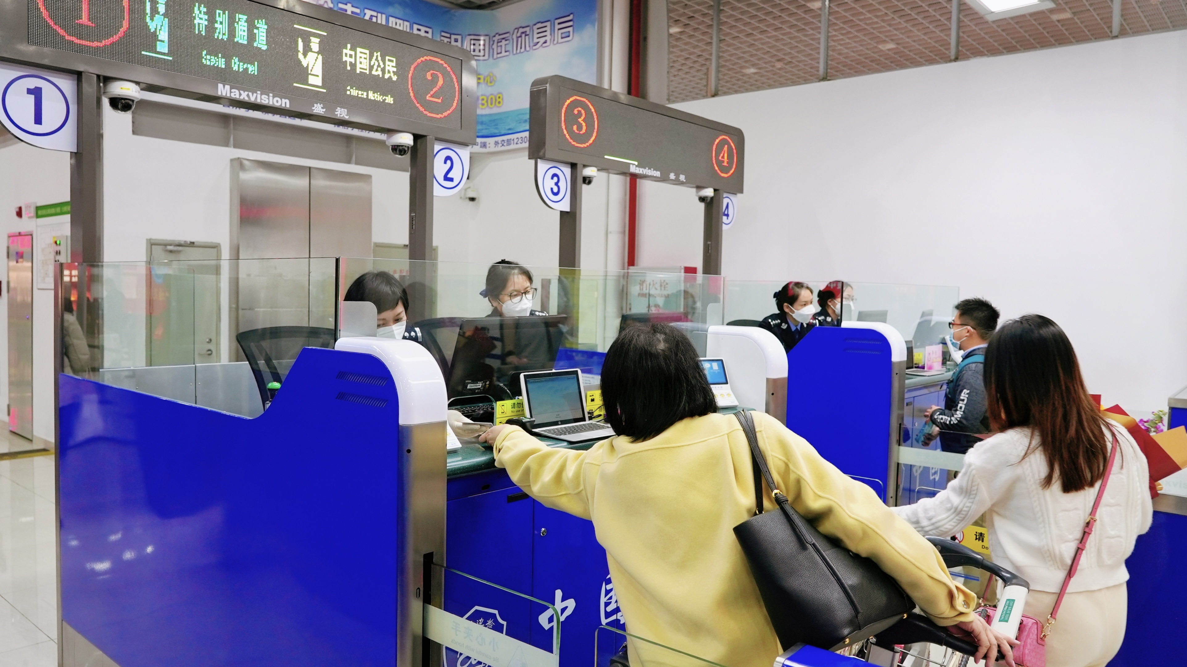 上午8时30分,九洲港口岸出境查验大厅迎来复航后首批出境旅客。“今天是复航通关第一天,20条查验通道全部开放,所有设备运行正常,查验过程非常顺利,民警准备比较充分,符合我们的预期。”首批出境旅客验放结束后,九洲边检站边防检查处副处长郭征说。
