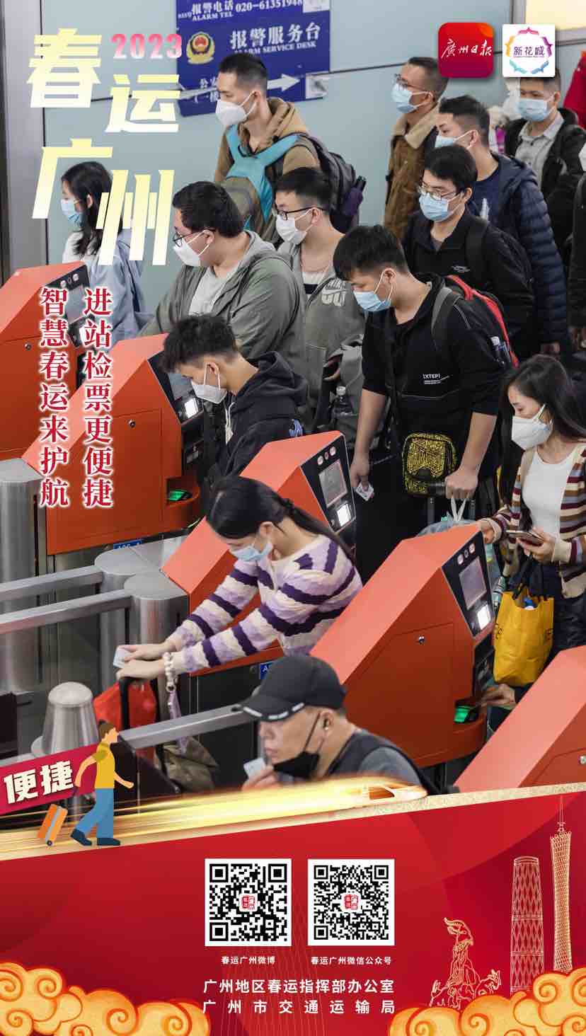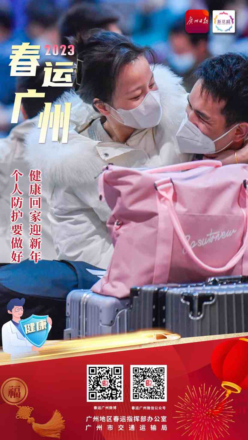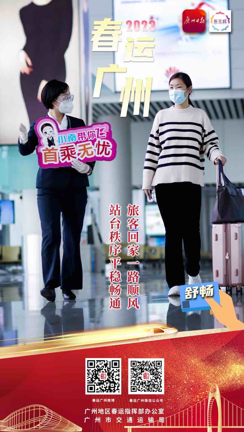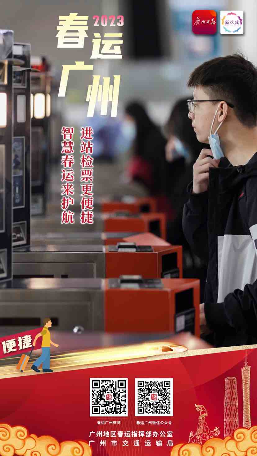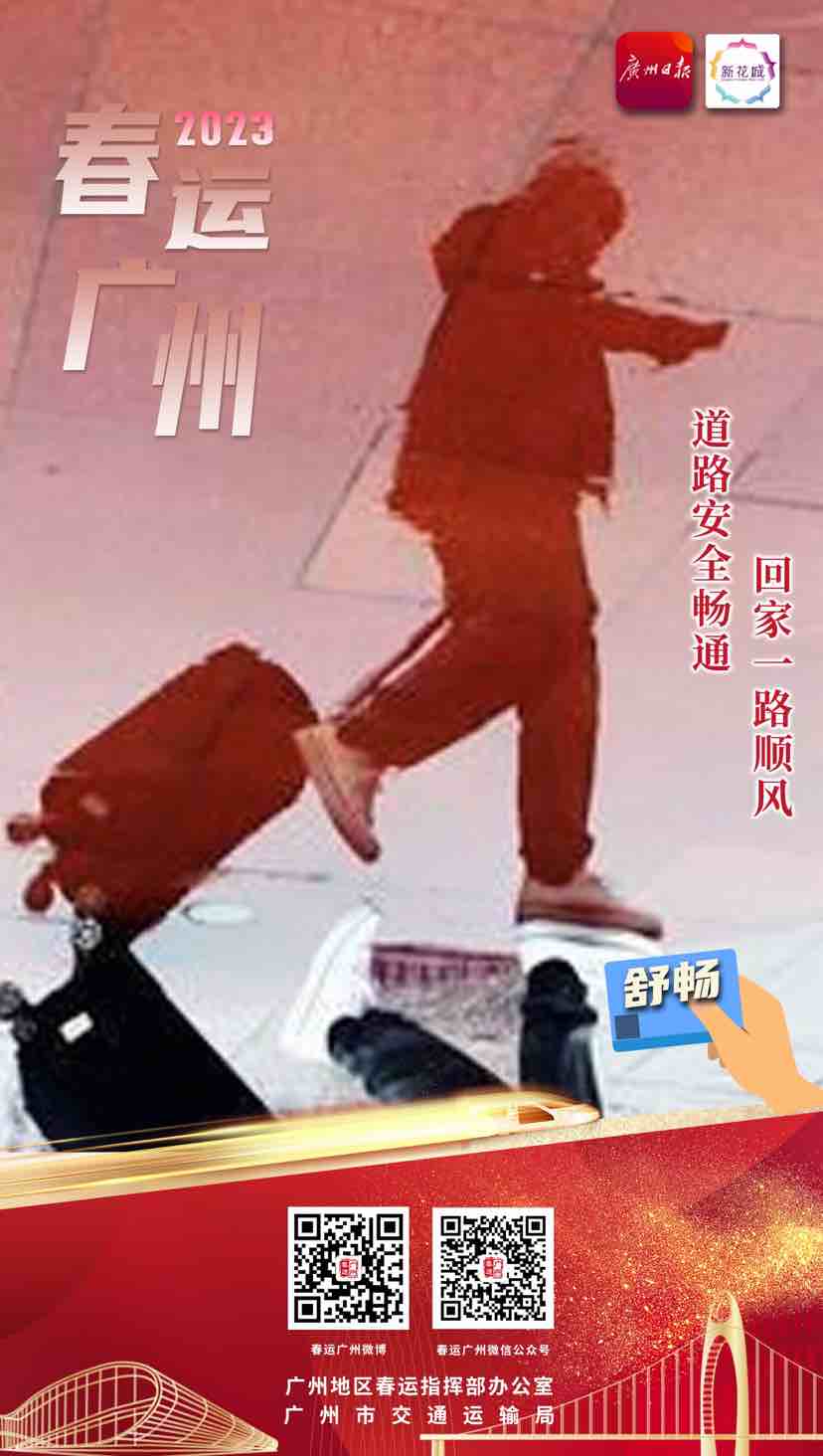 春运返乡团圆,有“春运广州”相伴。祝大家都能平平安安回家,开开心心过年!更多关于“2023春运广州”的精彩资讯,大家可以在微信、微博中搜索“春运广州”进行关注,或者直接扫描下方二维码关注专题。