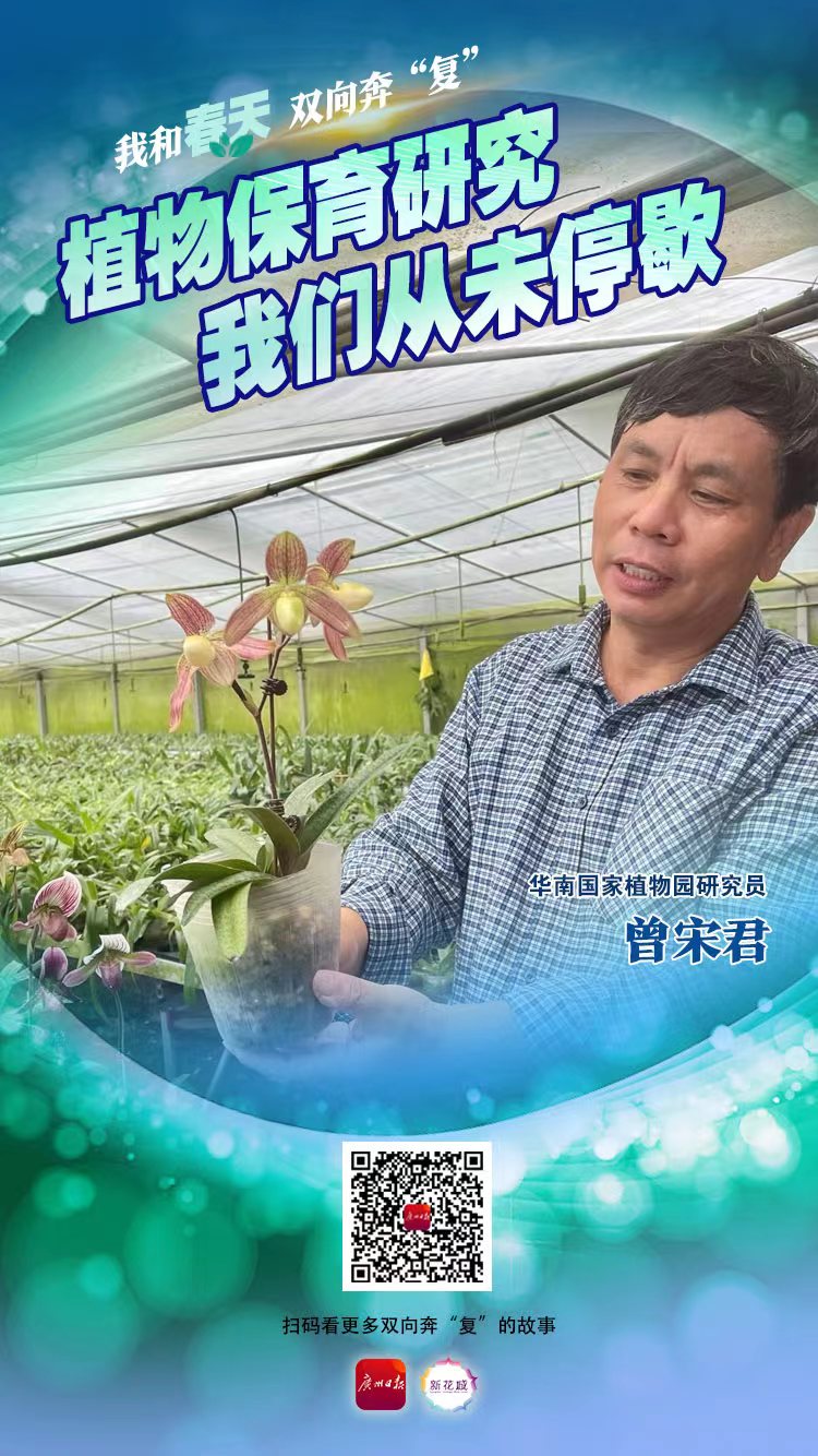 曾宋君在华南国家植物园进行兰花保育和研究工作。 图/受访者提供