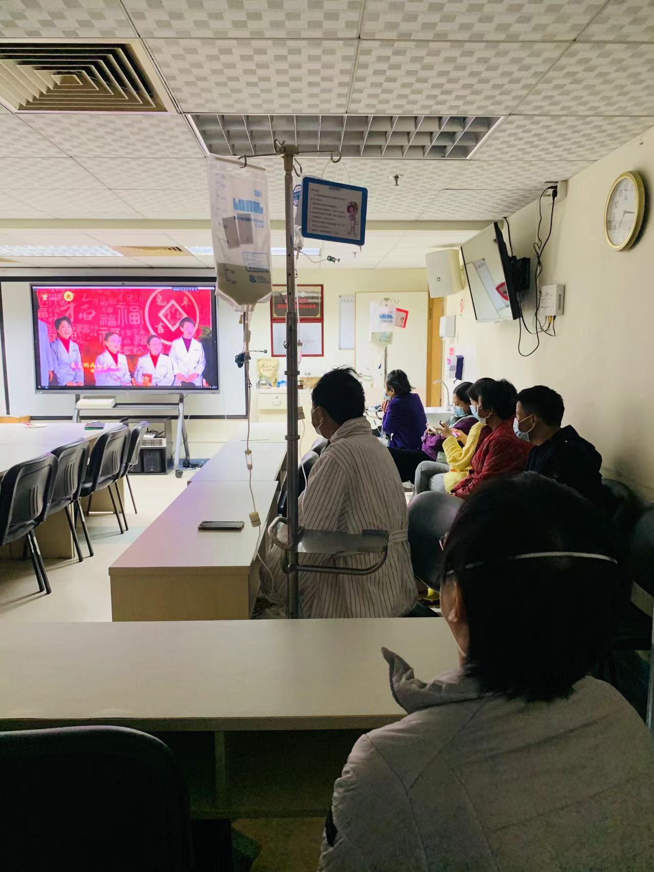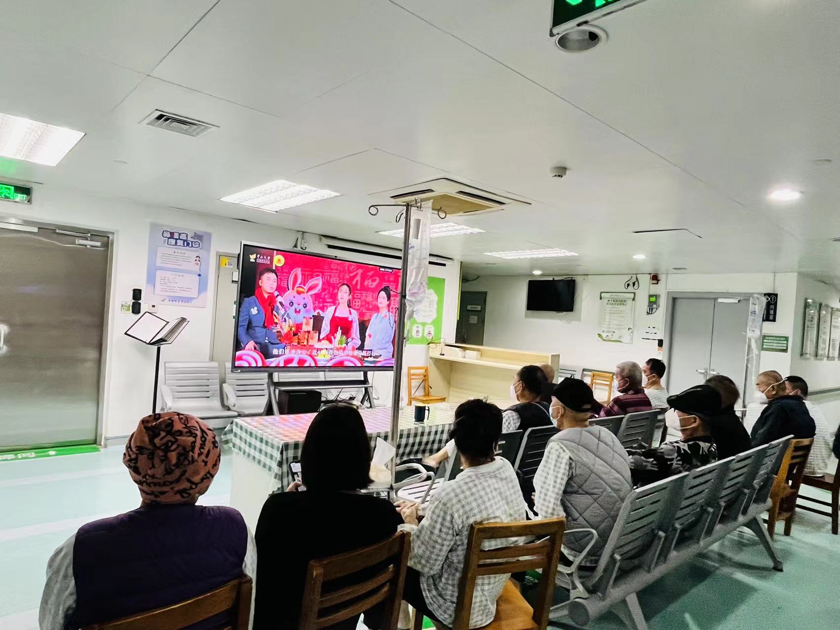 当天,许多住院病人在病区休息区收看这场精彩美妙的演出。
