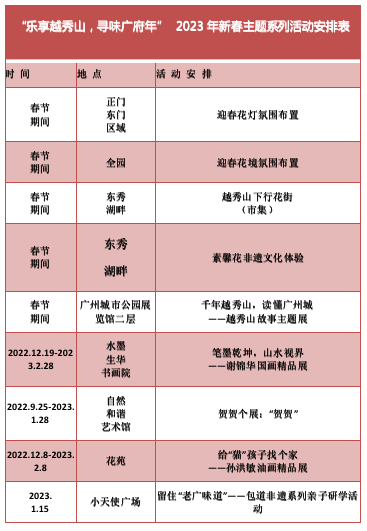此外,记者了解到,春节期间,广州越秀公园还开展了一系列新春主题活动,详情见下图。