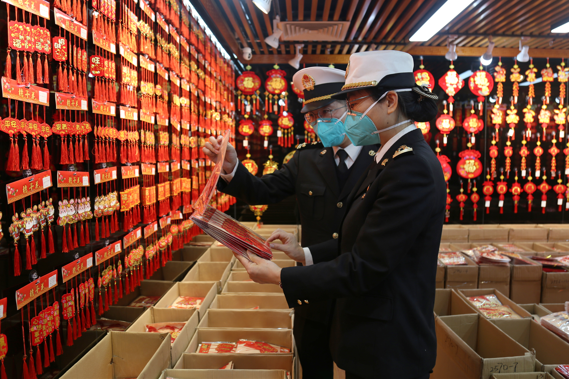 广州海关所属荔湾海关关员支持服务辖区春节饰品市场采购出口