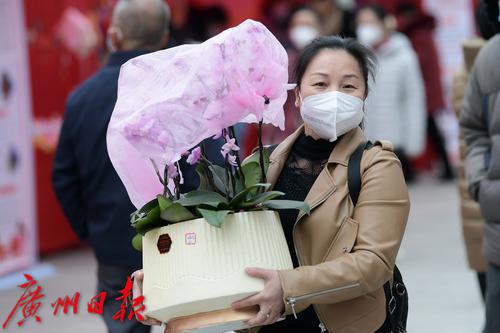 图为逛花市的市民拿着购买的鲜花。