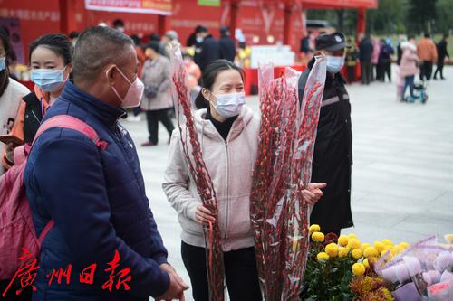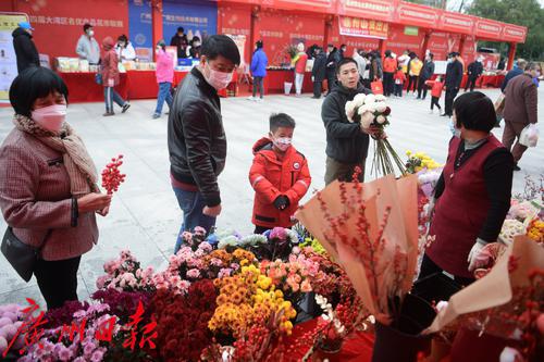 图为市民开心逛花市。