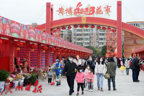 1月17日,黄埔区2023年传统迎春花市正式开锣,今年回归线下的黄埔花市以“3+N”的模式开展,即设置三个会场。除了设在黄埔公园的主会场外,还在绿轴广场和知识城南起步区开放一路设置分会场。“N”即黄埔区辖内各街镇设置的鲜花售卖点。上午,黄埔花园内热闹非凡,喜气洋洋,不少市民流连在各摊档内选购鲜花年货。