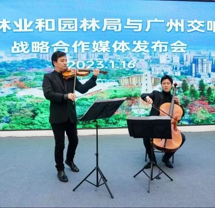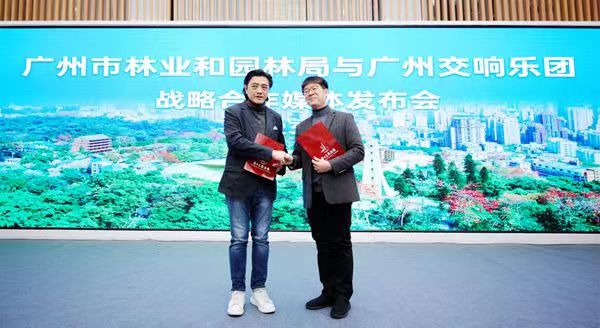 1月16日,广州交响乐团与广州市林业和园林局在位于越秀公园内的广州城市公园展览馆举行战略合作发布会。广州市林业和园林局副局长陈迅、广州交响乐团团长陈擎交换合作协议,双方将在未来发挥各自资源优势,开展开多种形式的合作,携手提升公园景区文化氛围,为广州市文旅结合探索新模式,助力老城市焕发新活力。