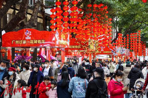 五彩斑斓的鲜花争奇斗艳,琳琅满目的年货阵阵飘香……15日,越秀西湖花式主牌楼“岭南第一楼”露出真容,百年西湖花市开启“预热”。老广们一家结伴而行,买鲜花买年货喜迎新年。