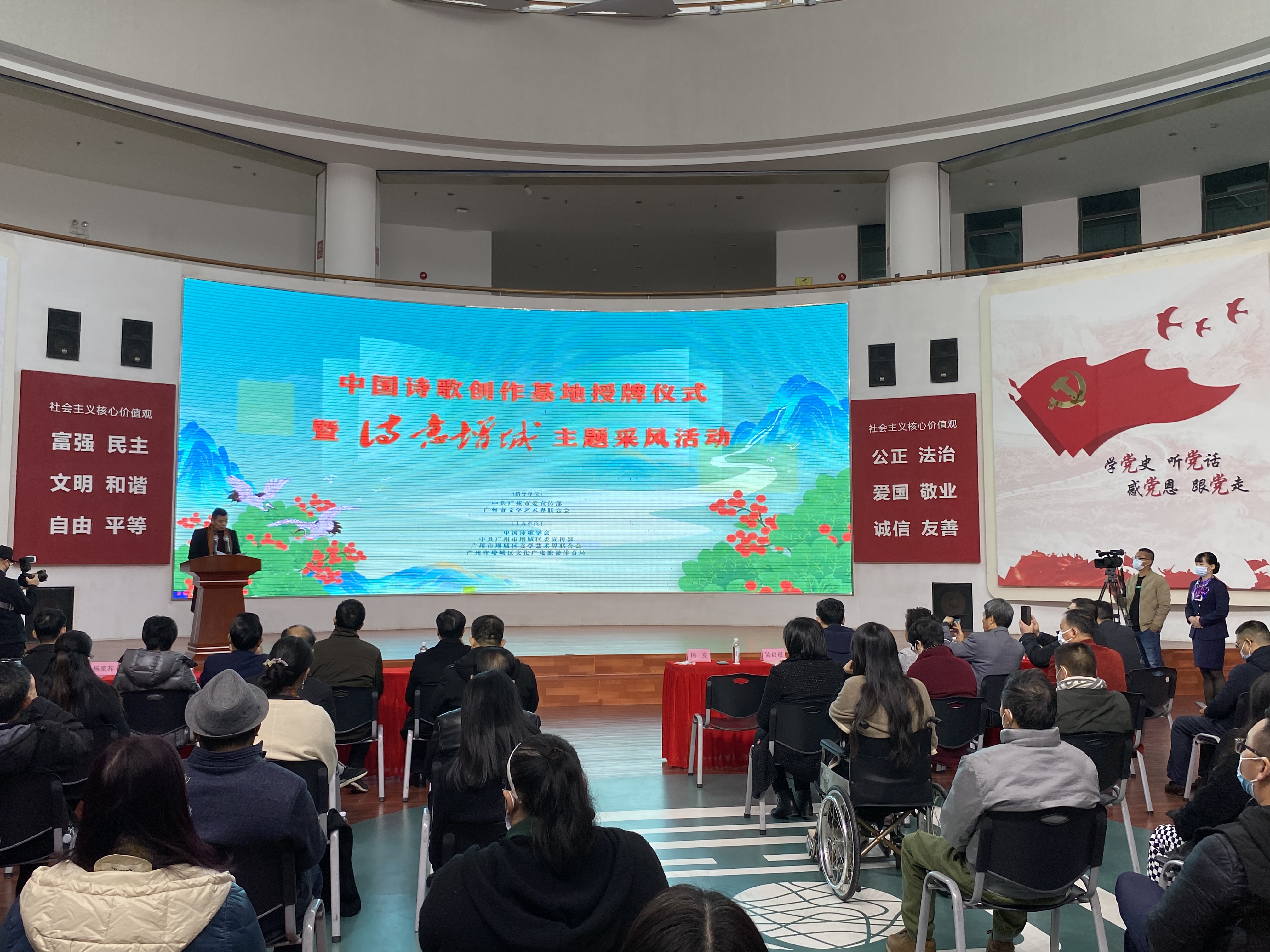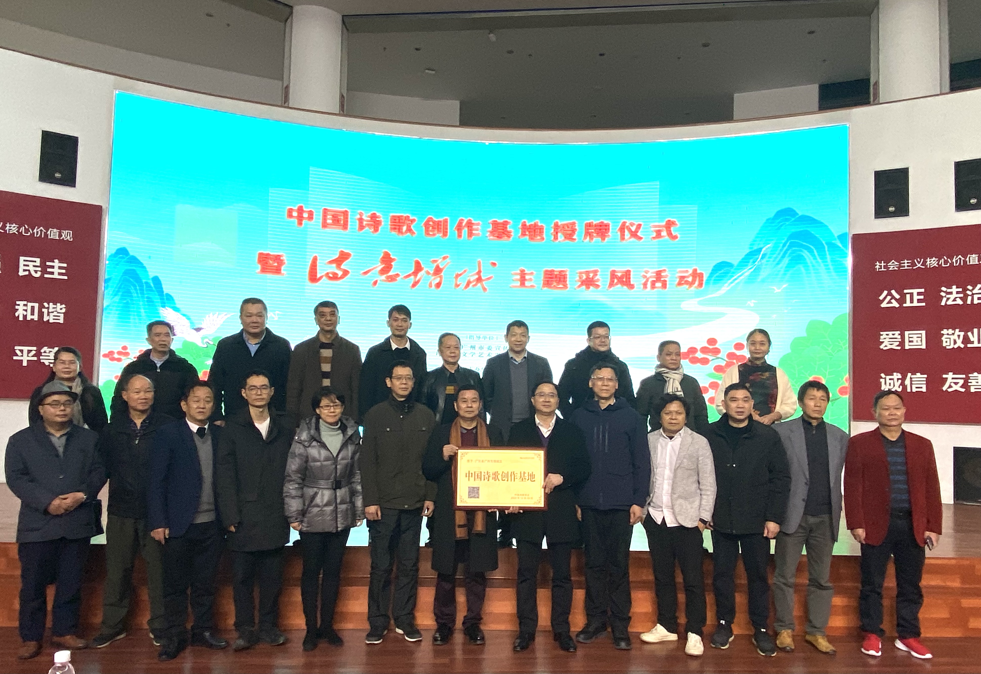1月17日,中国诗歌创作基地授牌仪式在增城区图书馆举行,这是首个落户广州的中国诗歌创作基地。增城区委宣传部负责人表示,基地的揭牌,将为增城弘扬诗词文化、激发诗歌创造活力、提升增城文化软实力和核心竞争力注入不竭动力,为推动广州“诗词之都”建设贡献增城力量。