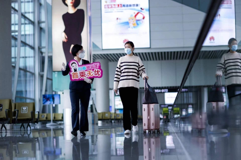 专人引导更贴心:设置首乘引导员,根据旅客需求提供全流程指引或分段式引导服务,讲解乘机流程及注意事项,邀请旅客拍照留念等,主动协助解决旅客疑难,提供爱心帮扶。