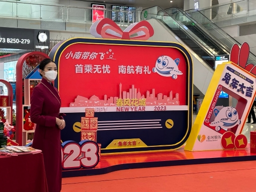 1月17日到1月24日,中国南方航空在广州白云国际机场二号航站楼出发厅开展“首乘无忧·南航有礼”主题服务活动,为首次乘坐南航国内航班的旅客提供一站式选座值机、行李托运办理和全流程指引等春运便民服务,温暖旅客回家路。