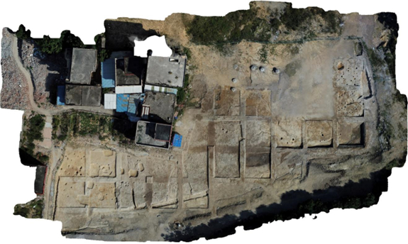 商时期堆积分布范围约1000平方米,堆积呈东、西薄中部厚的特点,出土大量的陶器、石器,一些废弃物甚至还保留着当时堆放的形态。根据出土遗物特征及堆积状态判断,可能是聚落的生产生活场所。出土陶器的口沿看,可辨识的器型有大口尊、圜底罐等,石器有双肩石斧、石锛、石环、砺石、石砧、石锤等。