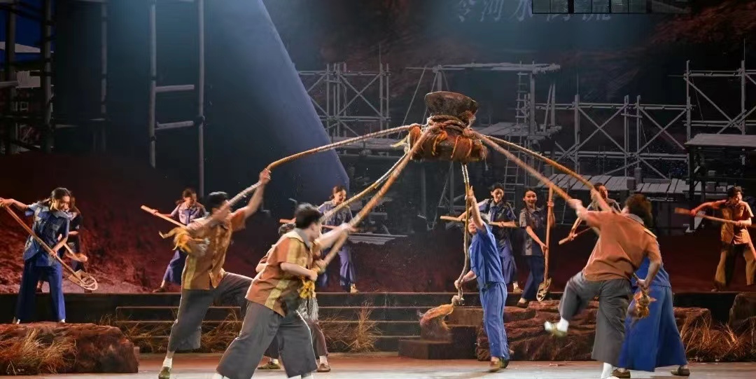 新编现代粤剧《东江紫荆红》,便在舞台上呈现这一工程的来龙去脉,把水放在生命中、把人放在工程中,借由工程写水的生命意义和人的坚强意志,将无私无畏的“东深人”每一天平凡的付出、长流的汗水、晒黑的皮肤、疼痛的伤口,以及他们从不妥协、面对艰险舍我其谁的勇气和不怕牺牲的精神淋漓尽致地展现出来。