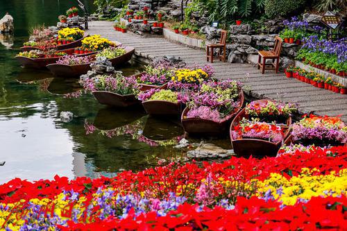 装饰得花枝招展的花船。