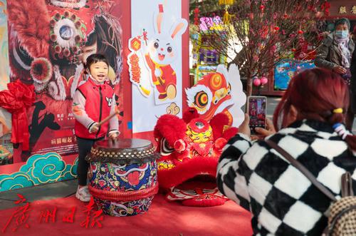 广州水上花市启动仪式上,醒狮给大家送上新年祝福。