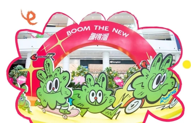 凯德乐峰广场与著名球鞋潮流文化名所——SOAR联手合作,以“200%爱广州”为主题,以充满本土情怀的粤语文化为载体,打造春节至潮的艺术主题展。本次活动联合青年涂鸦艺术家,以中国古代月宫玉兔神话为灵感,结合赛博朋克太空风格以及癸卯年五行中的“金红搭配”为配色方案,原创出多个形态的“太空兔”,并通过涂鸦、气膜美陈落地,让凯德乐峰广场迸发出充满活力、趣味及潮流感的广州人专属年味。