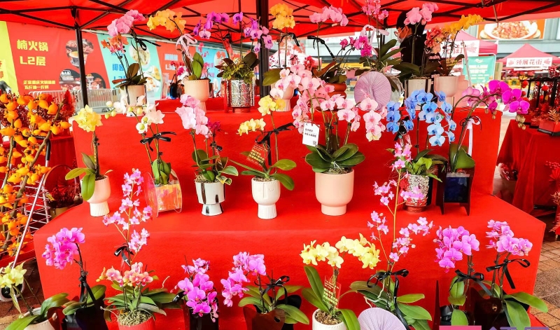 阔别三年,久违的迎春花市终于回归了!2023广州领展购物广场首届迎春花市与大家见面,在户外南广场,现场设置年花年桔等售卖30余个摊位,覆盖龙爪菊、蝴蝶兰、乒乓花、金桔等,还有特色年货、新春精品等迎春产品,色彩缤纷的鲜花装饰上新春挂件,仪式感满满,年味十足。