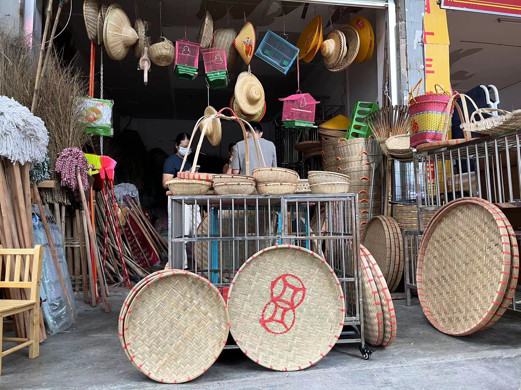 沿着“篷海”走了大约10分钟,记者终于来到了街道的另一头,本以为已经逛完了两龙墟,没想到却是刚开始。“两龙墟的摊位是呈T字形分布,刚刚我们逛完的正好是下面的‘一竖’,还有更广阔的‘一横’没有体验。”花山镇相关工作人员表示。