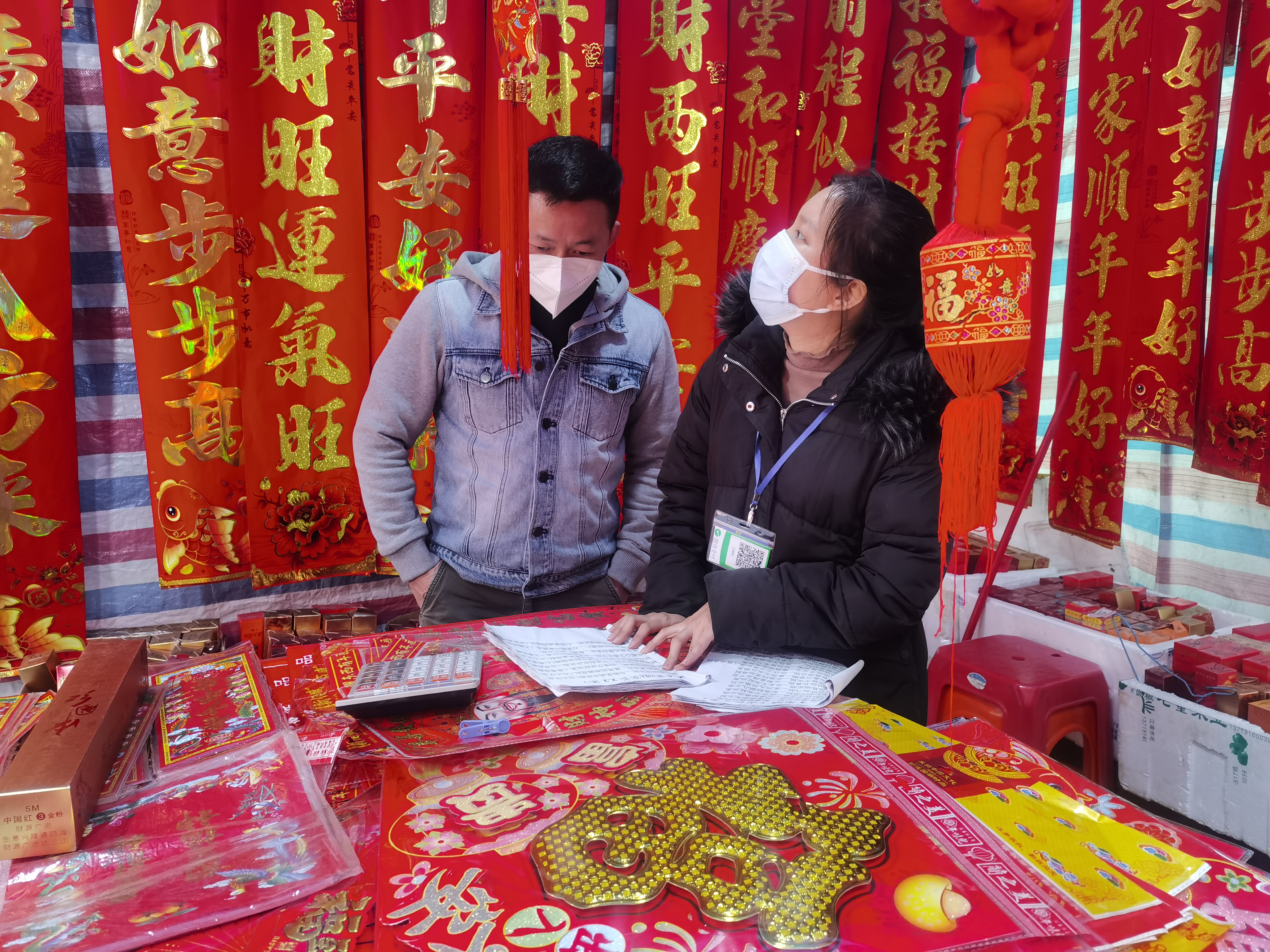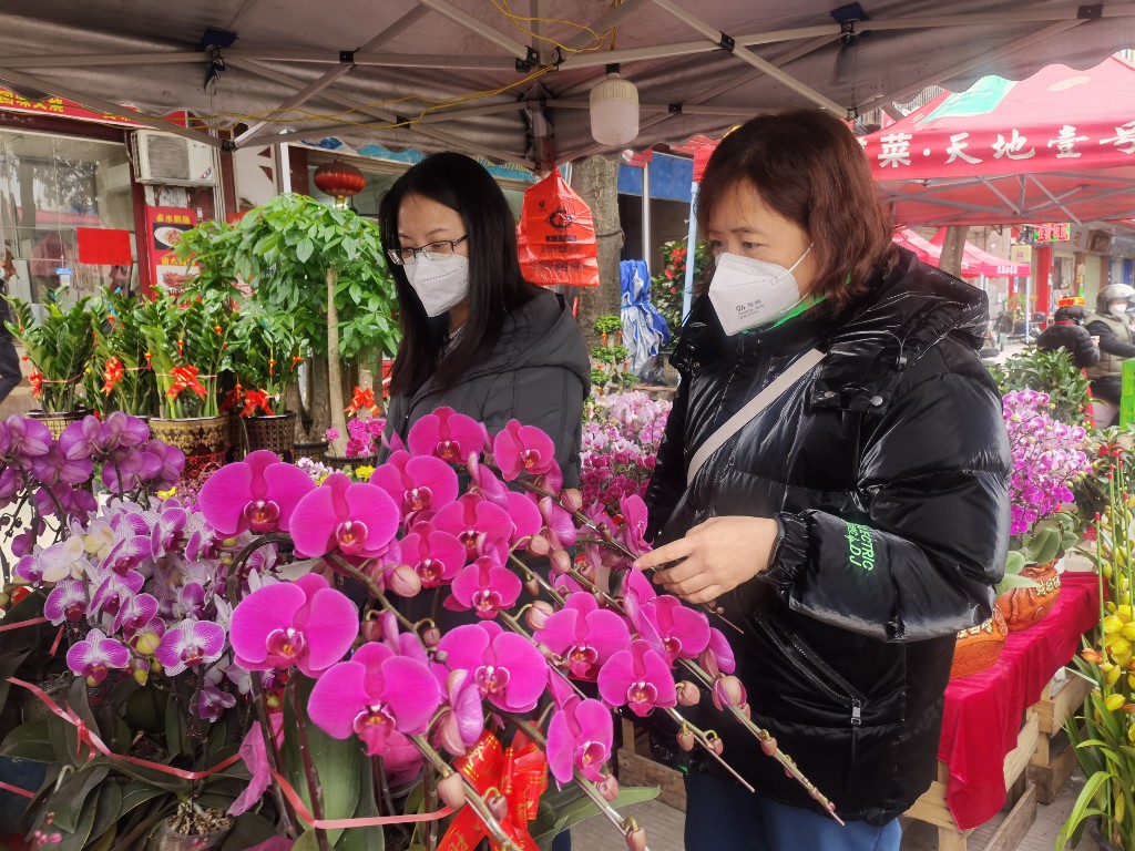 还有几天就正式过年,很多摊主们纷纷把自己精心准备的年货摆放在摊位前,这边是红灯笼对联大红福字,那边是年桔年花绿植盆景,到处都洋溢着浓浓的年味。有的摊位甚至长桌排开,红纸铺就,现场就可以定制翰墨飘香的独家春联。一名来自英德的摊主告诉记者,自己今天凌晨就来到了花山镇,就为了今天墟日能够早起早出摊。“来花都两龙墟日摆摊已经一年有余,这里不仅人多热闹,场地也足够大,东西种类也十分齐全,每次摆完挑选自己需要的东西带回英德,正好一举两得。”