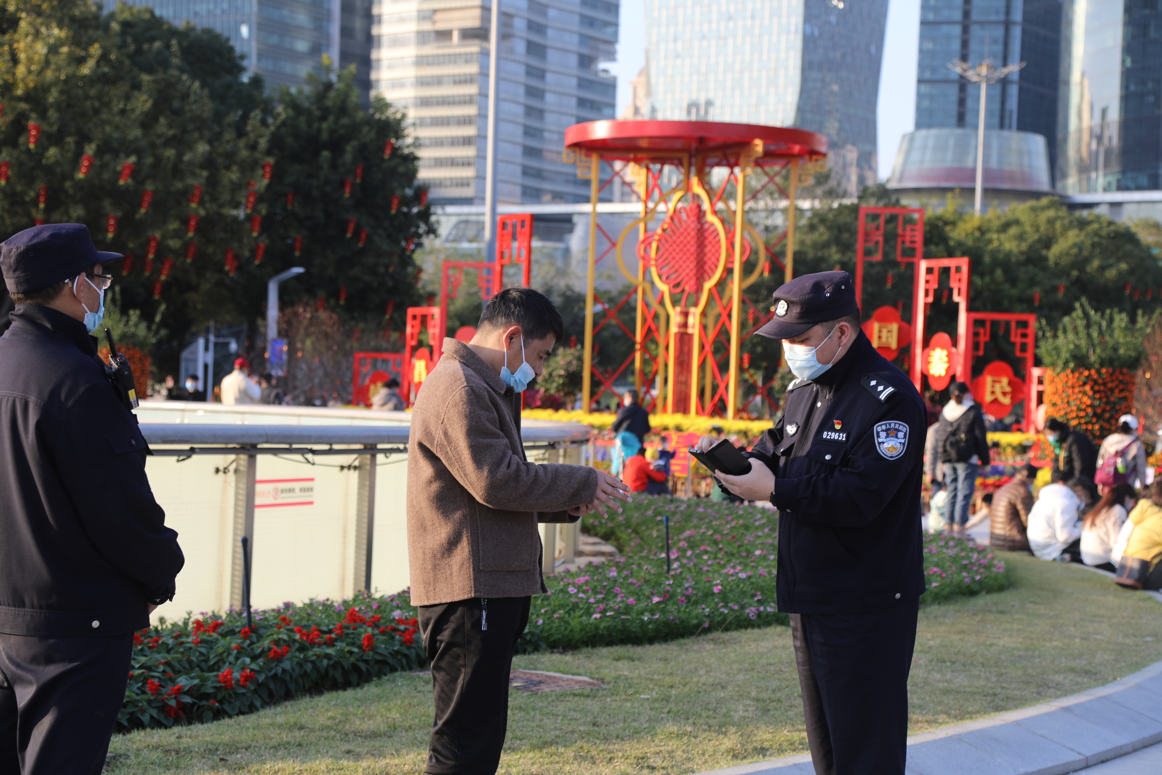 花城花开,年味正浓。春节前夕,广州“城市客厅”花城广场上,游客秩序井然。映衬着红彤彤的灯笼、飘扬的彩旗,正在巡逻的“藏蓝身影”格外让人安心。