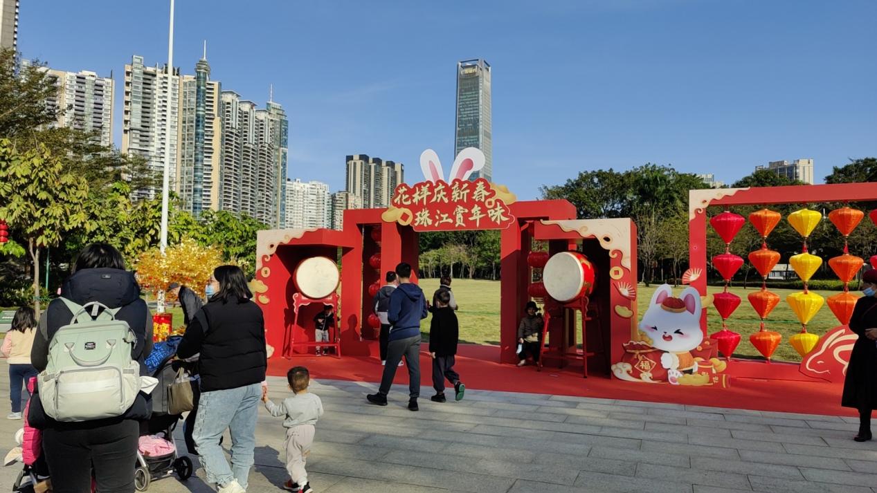 癸卯新春节将至,瑞兔吉祥,珠江新城CBD“绿芯”广州珠江公园,园内张灯结彩、花团锦簇,洋溢着一片欢乐祥和的节日气氛。节日的盛装与丰盛的新春文化活动,相得益彰,呈现广州城央浓郁的年味。