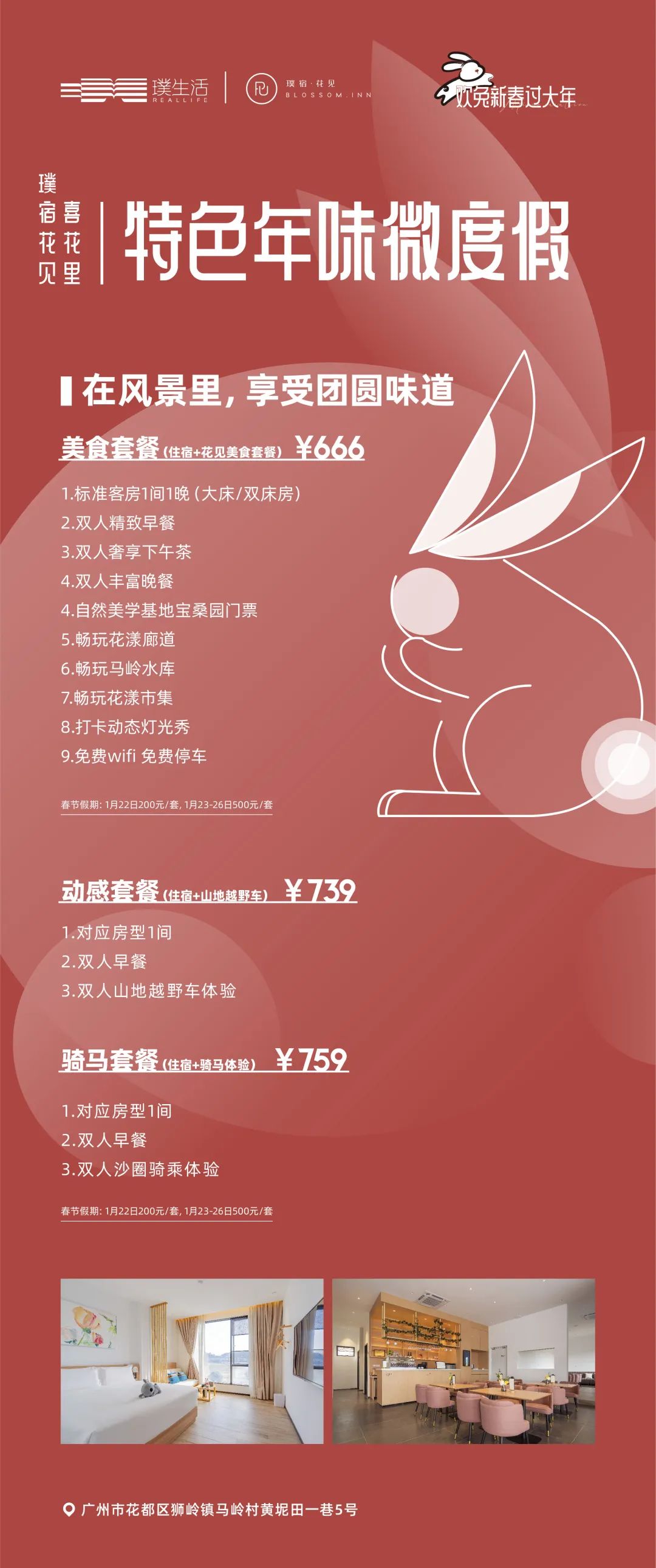 春节期间,喜花里推出了三种特色年味套餐:从美食、山地越野车、骑马等各方面都为你出谋划策,让你过一个特别的春节。