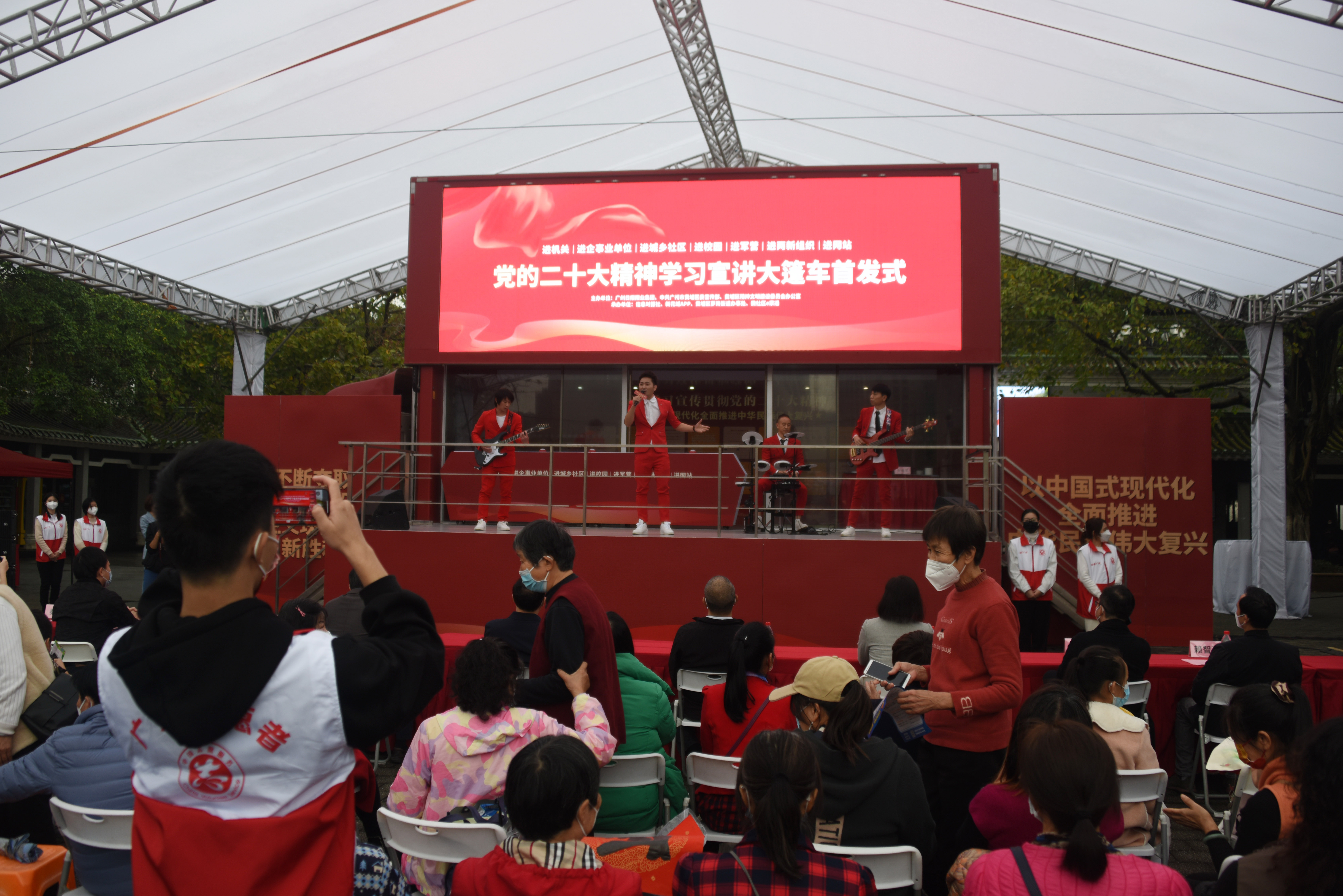 首发式启动后,大篷车便成为流动的宣传车,带着多样化的宣传内容,覆盖广州各街道、各社区、企业单位,更开到党员群众身边,让党的二十大精神在基层落地生根。