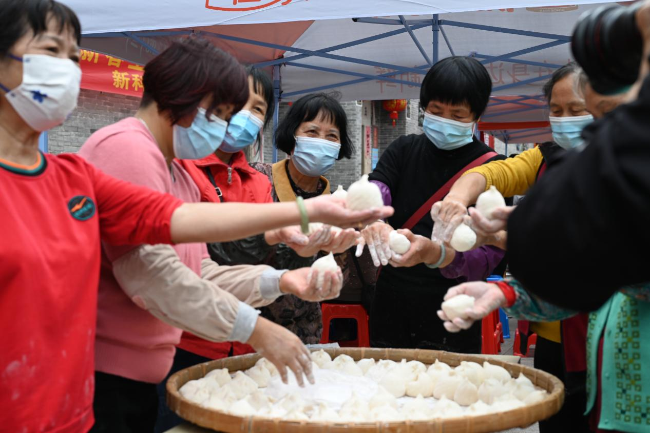 除了挥春活动,现场还有炸煎堆、炸油饺等活动,大家共同分甘同味。