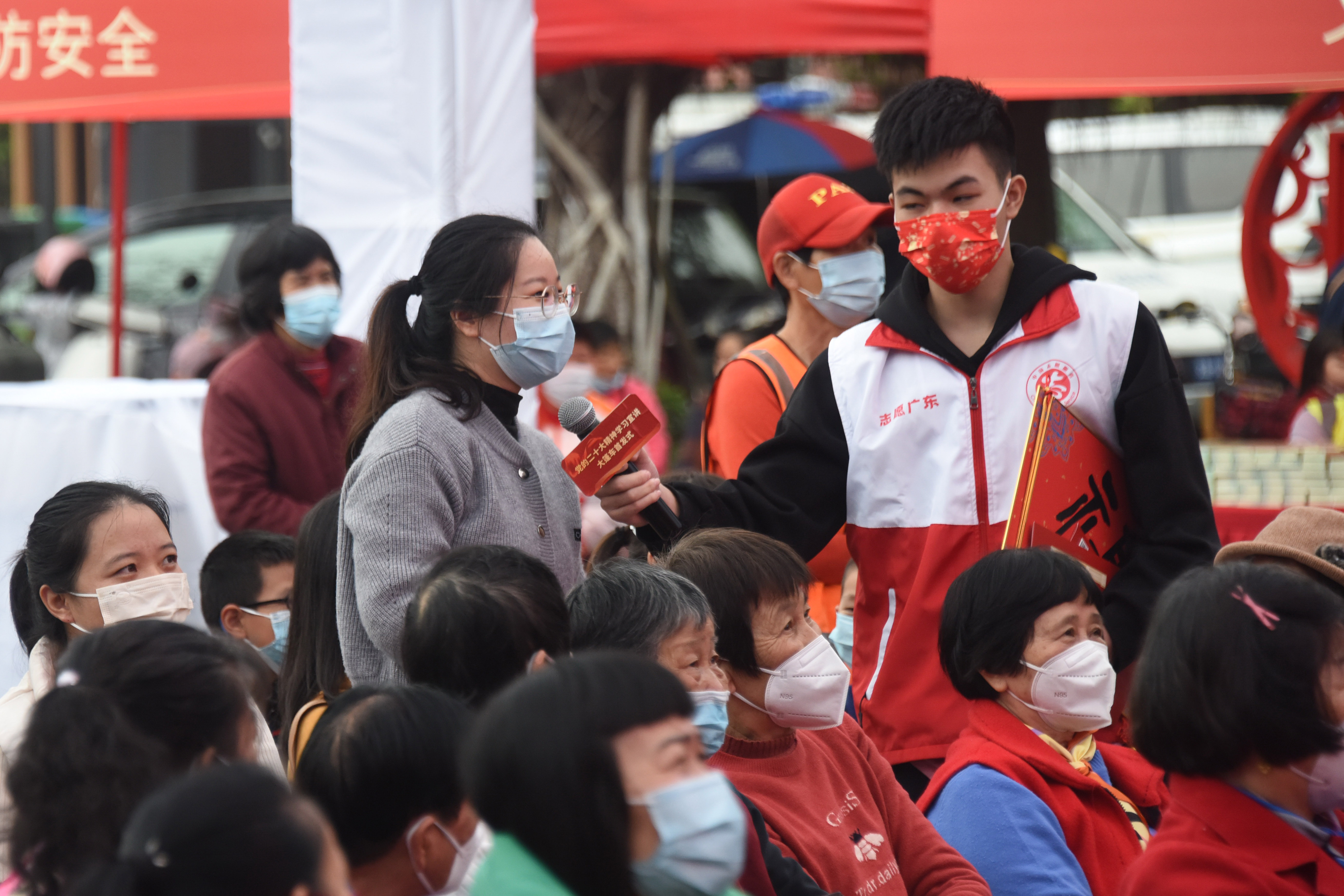 在大篷车舞台前,设置了“你的心愿,我的志愿”“双微”行动区和10个宣传摊位,向居民群众宣传禁毒、食品安全、文明交通、爱国卫生、垃圾分类、防诈防骗、湾区志愿、普法等知识。
