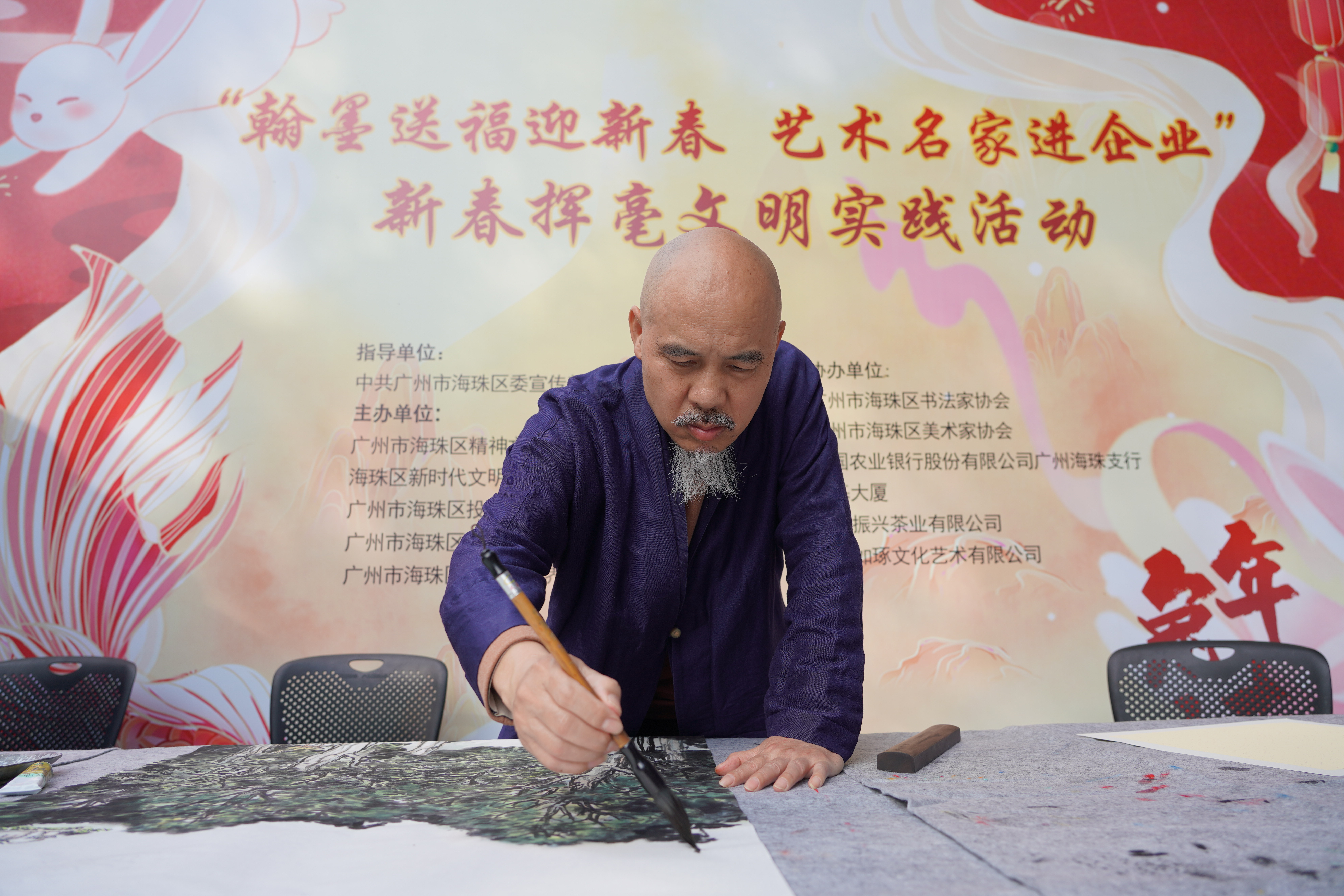 为弘扬传统节庆文化,营造墨香馥郁的新春氛围,1月13日、14日,海珠区分别在赫基大厦、海珠湖新时代文明实践中心举办“翰墨送福迎新春 艺术名家进企业”新春挥毫文明实践活动,邀请艺术家为企业员工和广大群众免费写春联和“福”字,为即将到来的癸卯兔年春节渲染浓浓“年味”。活动以“我们的节日·春节”为主题,旨在引导区内企业和广大群众体验节日习俗、展现传统文化、增进文化自信,把文化惠民服务送到企业和群众“家门口”。