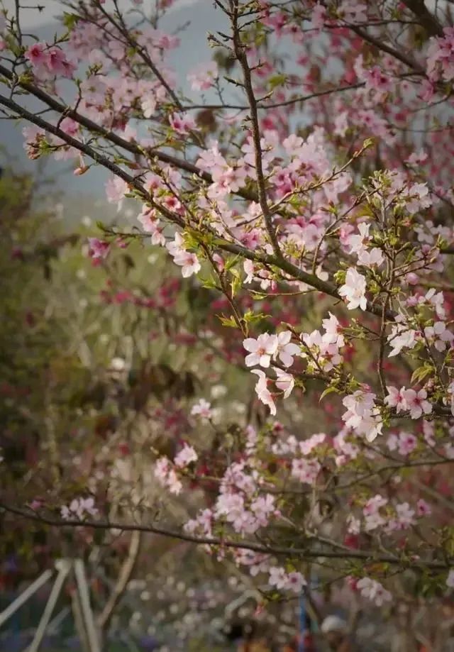 “小园新种红樱树,闲绕花枝便当游”,园区内还种植有黄花风铃、红花风铃、油菜花、波斯菊、金鱼草等各色花卉姹紫嫣红。