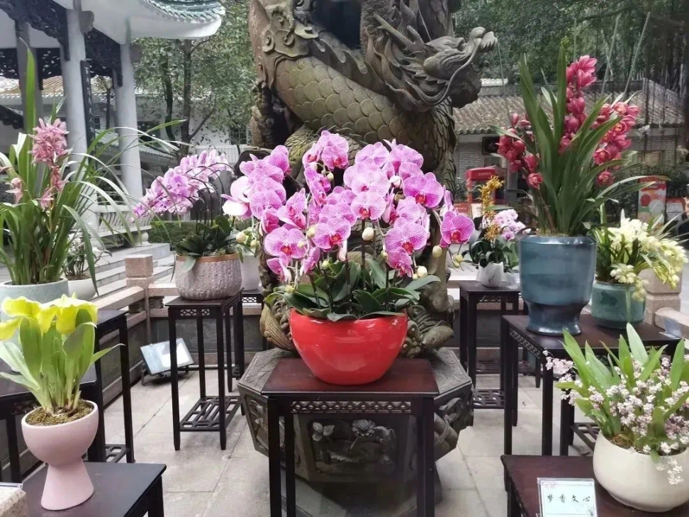 广州海拔最高的花海,就非摩星岭的兰花展莫属。春节期间来到摩星岭,现场共展出蝴蝶兰、兜兰、石斛兰等40余个品种近6000株兰花争奇斗艳,为市民游客打造出青山绿水中的兰花仙境。