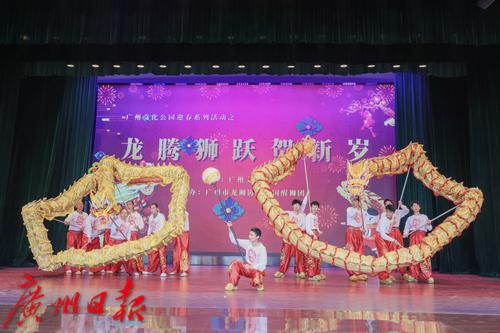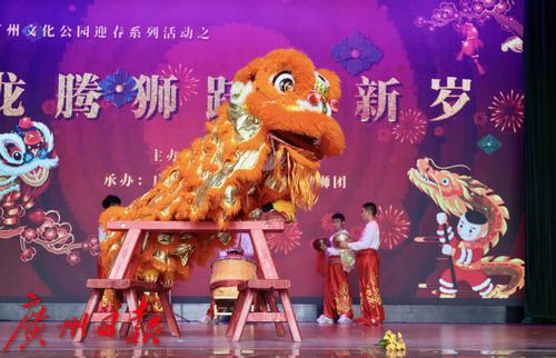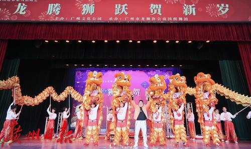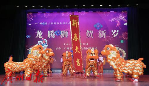 “龙腾狮跃贺新岁”春节龙狮表演活动在文化公园中心台举行。
