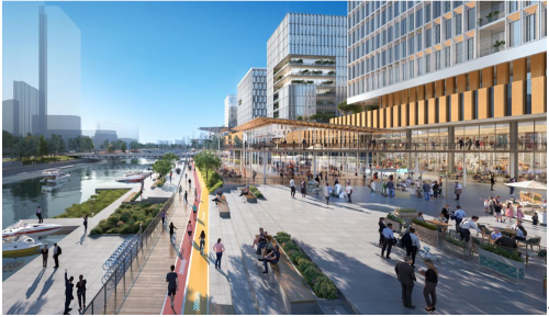 营造高品质人居生活。针对地区功能特点及不同人群的需求,通过“城市级-片区级-社区级-街区级”四级生活圈体系,高标准配置公服市政设施333处及不少于产业建筑规模6%的产业服务设施,使用数字技术提升城市治理水平,显著提高城市服务水平与质量。通过场所营造,让具有文化底蕴的老场所绽放新的活力;结合碧道、商业街、立体步行街区营造步行环境安全友好的城市交往空间,改善人居环境、提升城市生活品质。