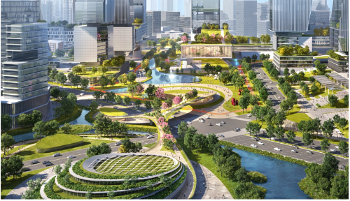 本次规划践行绿色发展理念,以“尊重自然、顺应自然、保护自然”为核心内涵,促进人与自然的和谐共生,遵循“城水共生、生态共融、数字创新和未来社区”四大规划理念,打造面向未来、生态宜居、令人向往的“数字创新活力区”。
