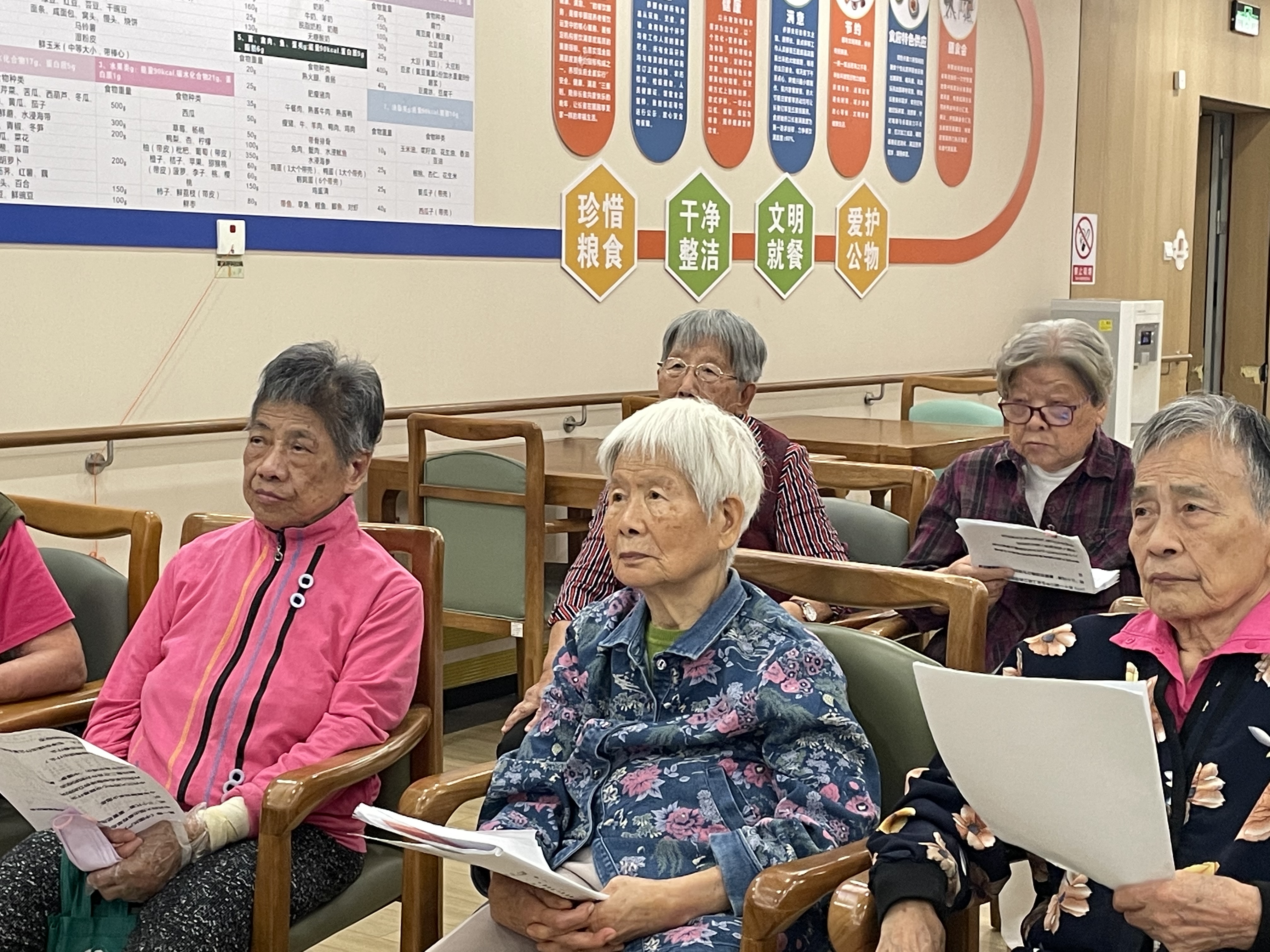 这11位老人是越秀银幸颐园(大德路)养护院(以下简称养护院)的在住老人,他们当中年龄最大的已经89岁,平均年龄86岁。在农历新年到来之际,他们怀着喜悦的心情聚在一起,神采奕奕地用嘹亮歌声迎接新年。