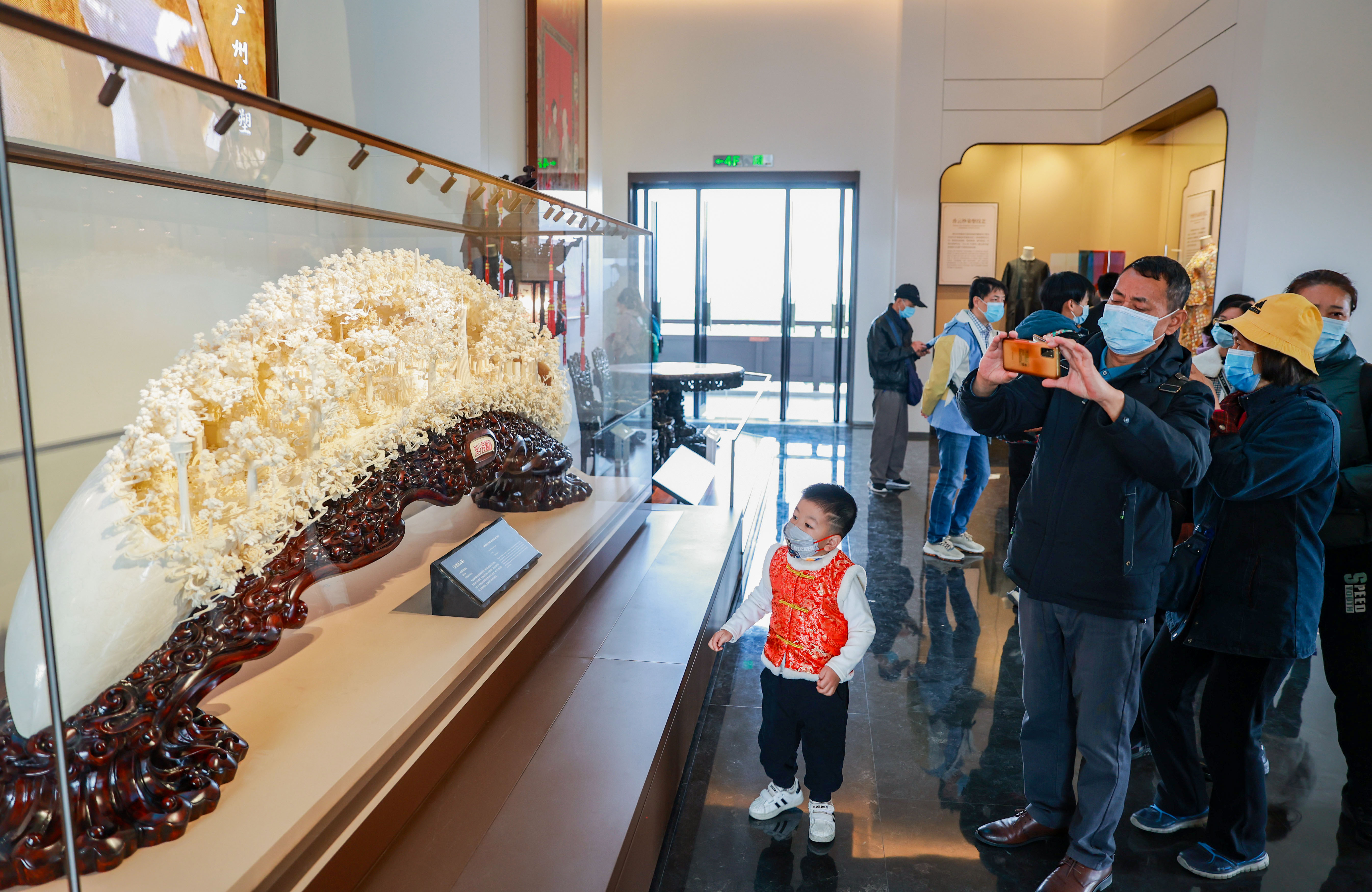 到艺术馆看展成为不少市民过年的新方式。在广州市文化馆,除了以体验的方式感受非遗之美外,还可以通过两个非遗专题展览,穿越广州千年历史,看广州非遗的源起和繁荣。