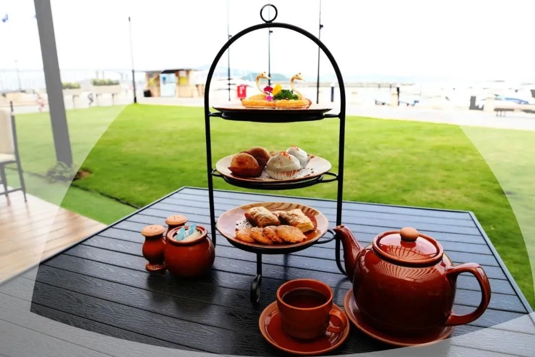在海风的微微吹拂中,喝着下午茶。