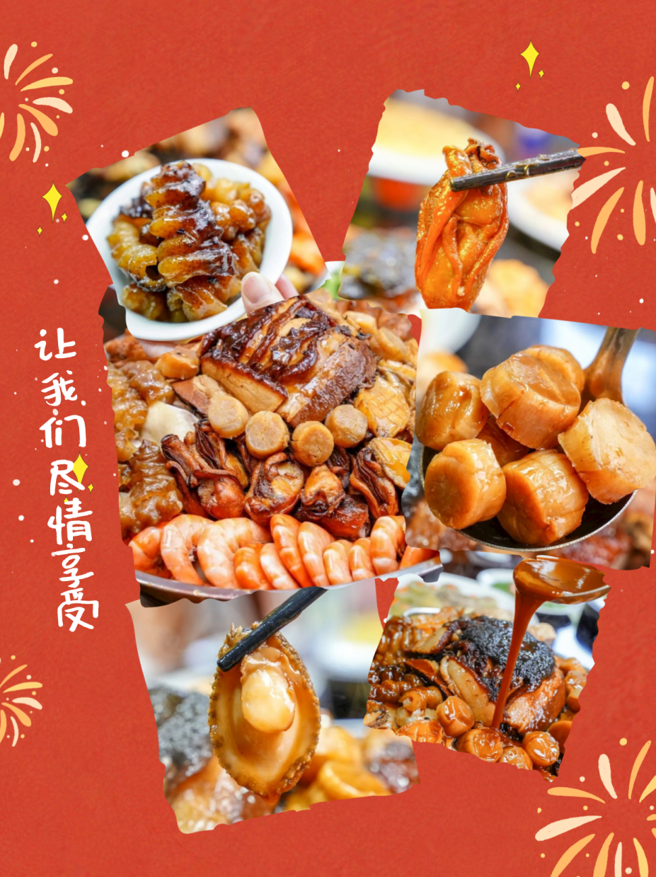更重要的是,【茗荔园】应景推出了盆菜系列。十几款食材汇聚一盆,荤素搭配恰当,色泽红润鲜艳,光是看着就让人特别有食欲,是团年饭的好选择。