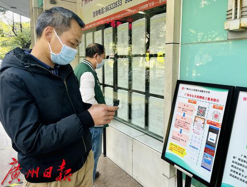 求职者在观看线上服务指引,网络专场招聘会在“广州公共招聘”微信小程序上不间断举办。