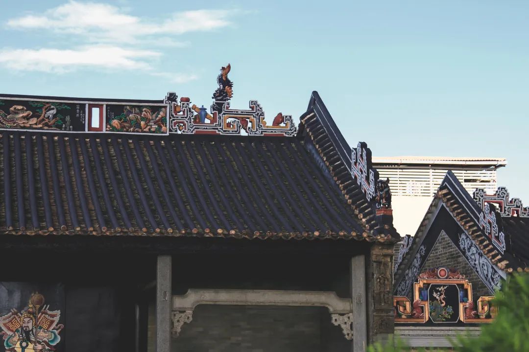 屋檐上的灰塑色彩鲜艳