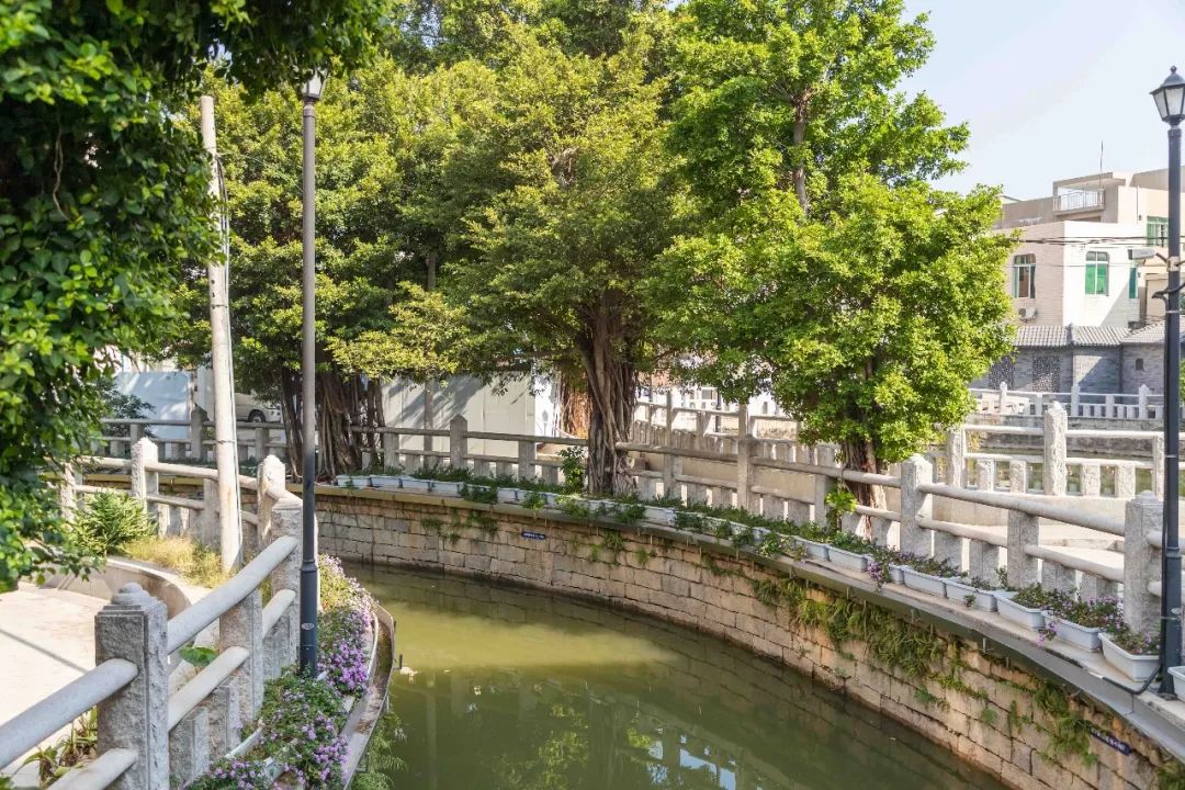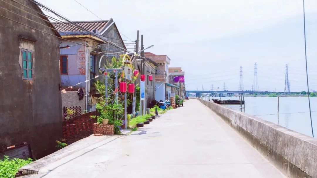 河涌两旁,彩色砖墙的
