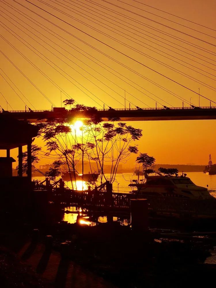 看着落日余晖在江面泛起金光点点