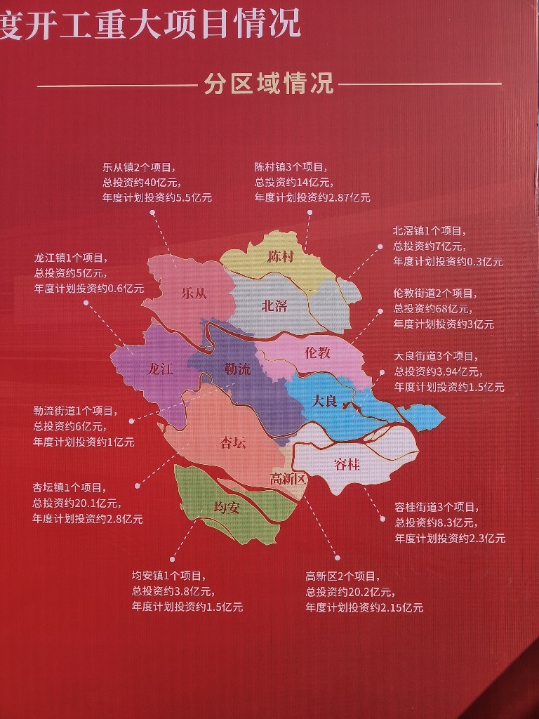 广州日报全媒体记者了解到,今年一季度,顺德有20个重大项目开工,总投资约196.34亿元,年度计划投资23.52亿元,以竞标争先、赛龙夺锦的决心全力冲刺,实现重大项目建设“开门红”。