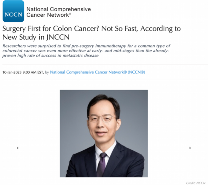 2023年1月12日,中山大学肿瘤防治中心(以下简称“中肿”)丁培荣、张晓实、潘志忠教授领衔的多中心团队在国际医学界享有盛誉的《美国国立综合癌症网络(NCCN)官方杂志》(Journal of the National Comprehensive Cancer Network)上在线发表了《新辅助免疫治疗为局限性错配修复蛋白缺陷或微卫星高度不稳定(dMMR/MSI-H)结直肠癌带来显著疗效和低复发率》一文,在国际上首次报道了局部晚期结直肠癌新辅助免疫治疗的长期疗效。