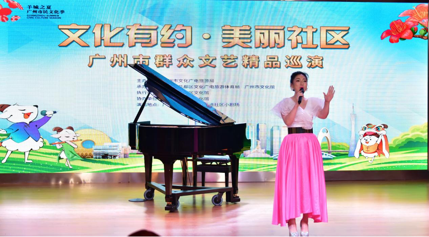 其中,“文化有约·美丽社区”—2022年广州市群众文艺精品巡演是五大板块中 “笃赏”百姓舞台板块之一,整体展示了广州市近年来的优秀群文创作艺术成果,该项板块活动开展了13场“文化有约·美丽社区”—2022年广州市群众文艺精品巡演、12场群文公益讲座、12场专题巡展,该活动采用了线上直播、线下互动的方式,范围涵盖广州市所有城区。