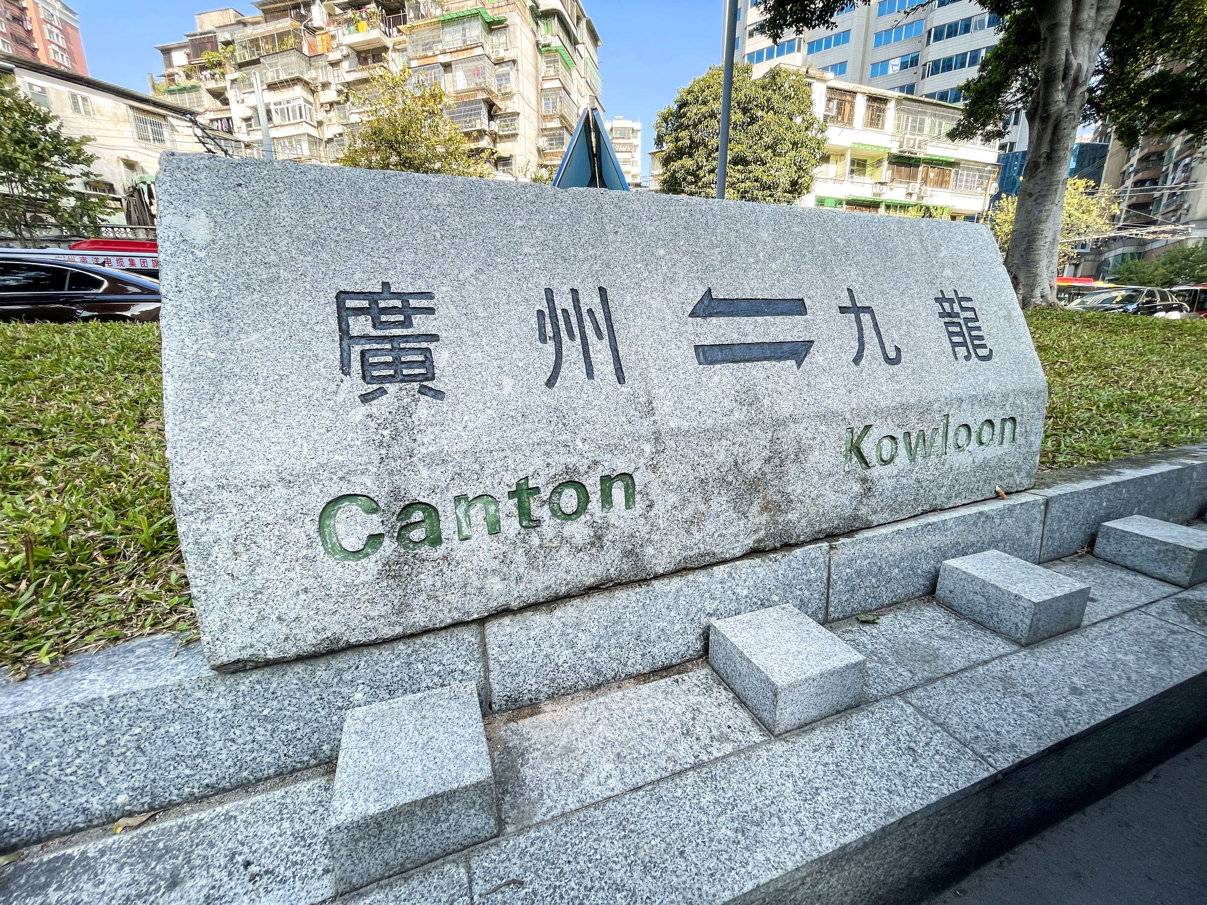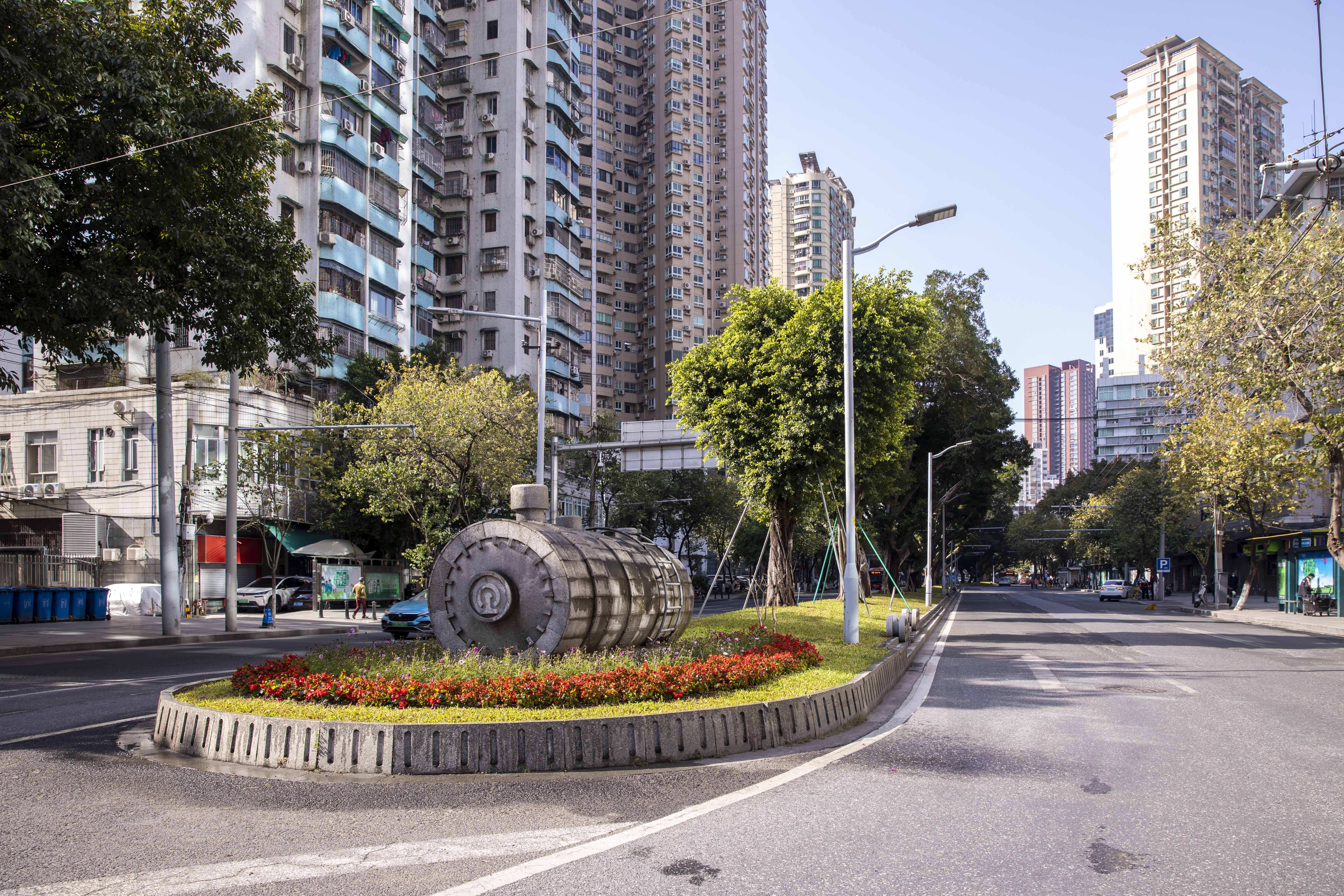 白云路中间绿化带上的火车元素,记录着位于此路的广九火车站这段历史。